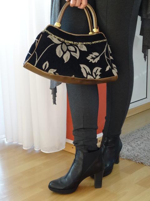 Die Tasche habe ich beim Umräumen meines Kleiderschranks für die Wintersaison wieder entdeckt. Sie ist wirklich ein Unikat und ein Erbschaftsstück. Ich hatte sie vor einigen Jahren von meiner Großtante bekommen. Nur selten nehme ich diese Tasche, das sie nur zu wenigen Outfits passt. Aber für das Foto musste sie einfach wieder mal auf’s Bild. Wie gefällt sie Ihnen?