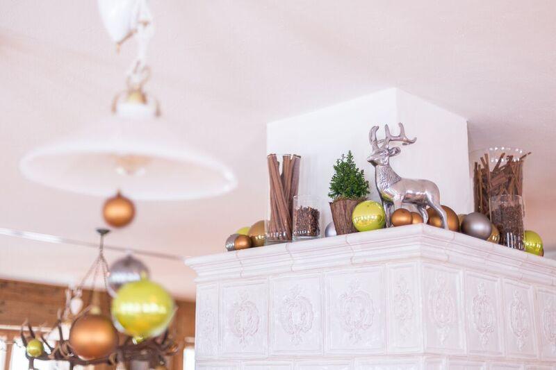 Der Kachelofen passt so richtig zur kuscheligen Stimmung. Fellkissen und die Liebe zum Detail machen diesen Raum zu einem meiner Favoriten auf Gut Kaltenbrunn.