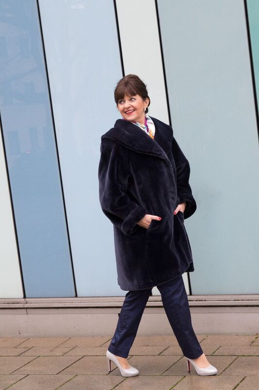Mein Fake Fure Mantel in Nachtblau hat einen längere Reise hinter sich. Entdeckt habe ich dieses schöne Stück in Hamburg. Ich habe es mir lange überlegt, denn er ist nur zu speziellen Gelegenheiten tragbar. Gut, wie Sie sehen, ich habe mich entschieden ihn mitzunehmen. Schon häufiger wurde ich angesprochen, wo ich diesen Mantel gekauft habe. Er bekommt viel Zuspruch. Er ist absolut kuschelig und wärm extrem.