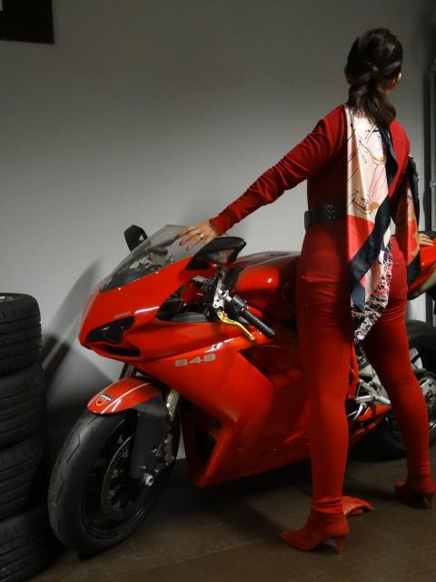 Heute haben wir es mit Rot nicht nur bei meinem Outfit belassen. Wir haben noch ein passendes Motorrad von Ducati für mich ausfindig gemacht. Ehrlich, es war nicht geplant. Auf einmal stand dieses wunderschöne Motorrad genau dort, wo wir es gebraucht hatten.