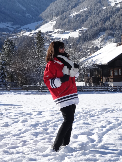 Dein Outfit finde ich auch ganz wunderbar. Die Farbe passt sehr gut zu dir und ist ein schöner Tupfer in der weißen Landschaft.