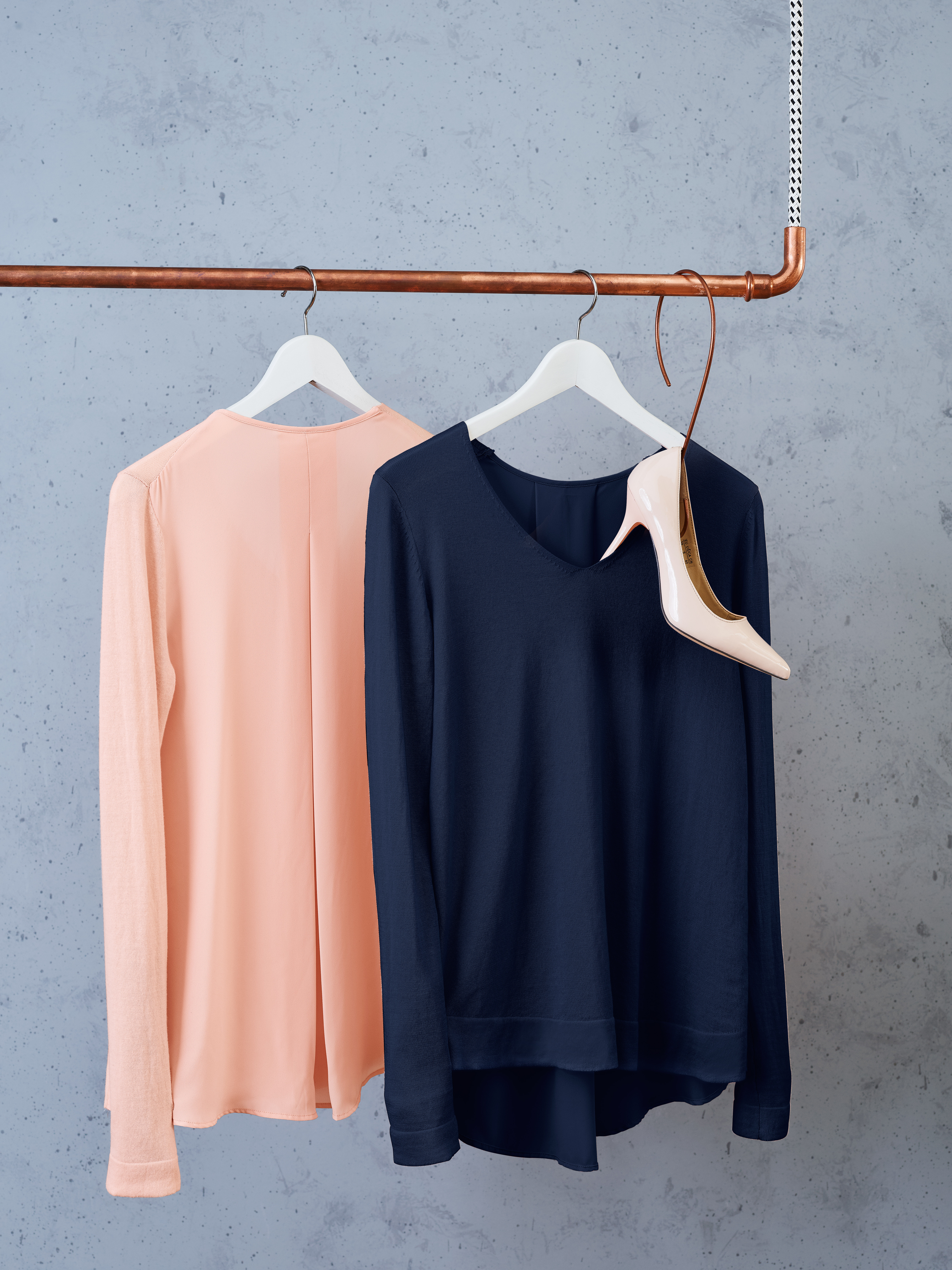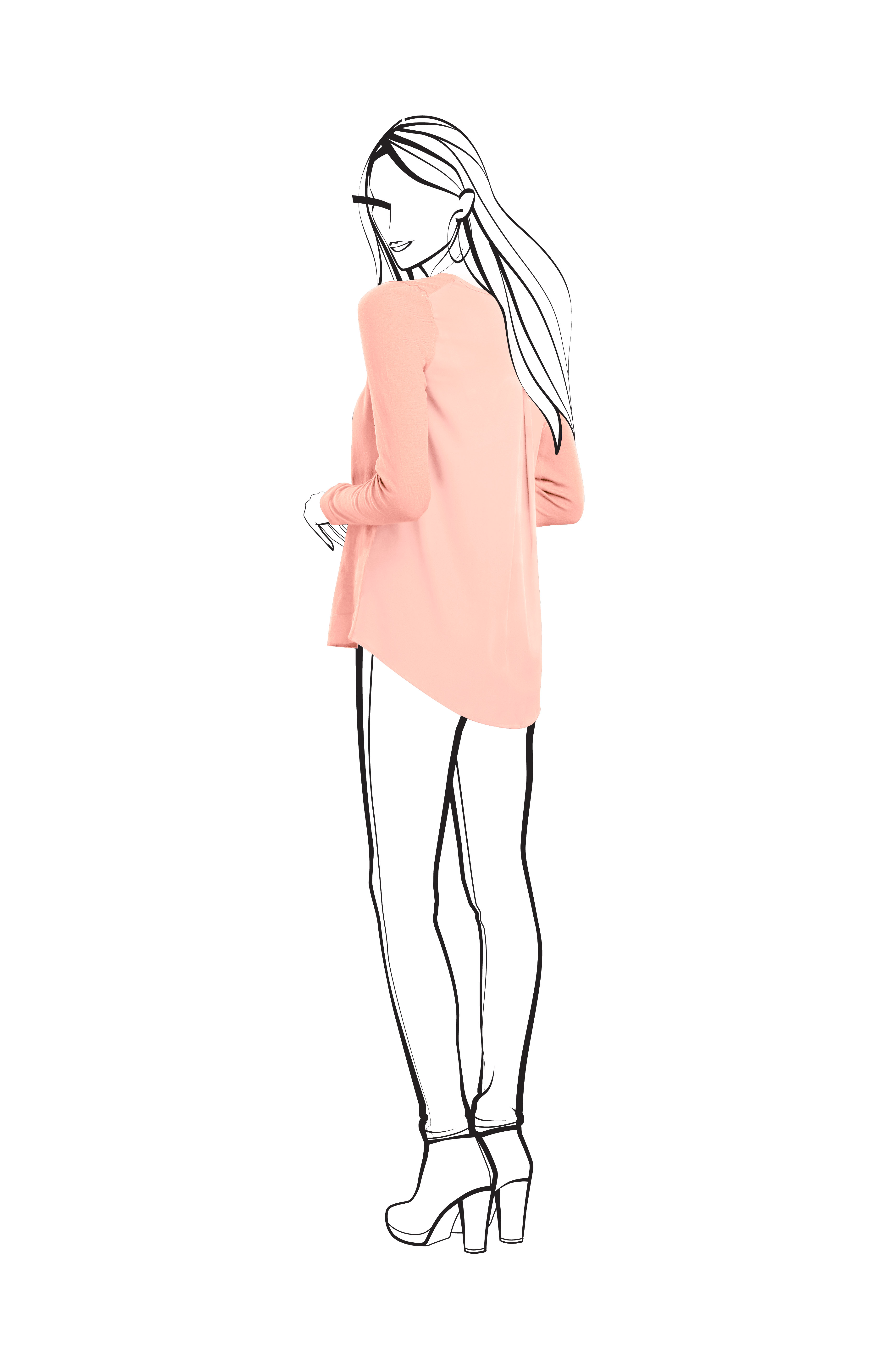 Wenn Du es lässig und komfortabel tragen möchtest, dann wähle einen oversized Pulli zum Jumpsuit. Im rückwärtigen Bereich ist er etwas länger geschnitten, so dass der Hüftbereich leicht umspielt wird.