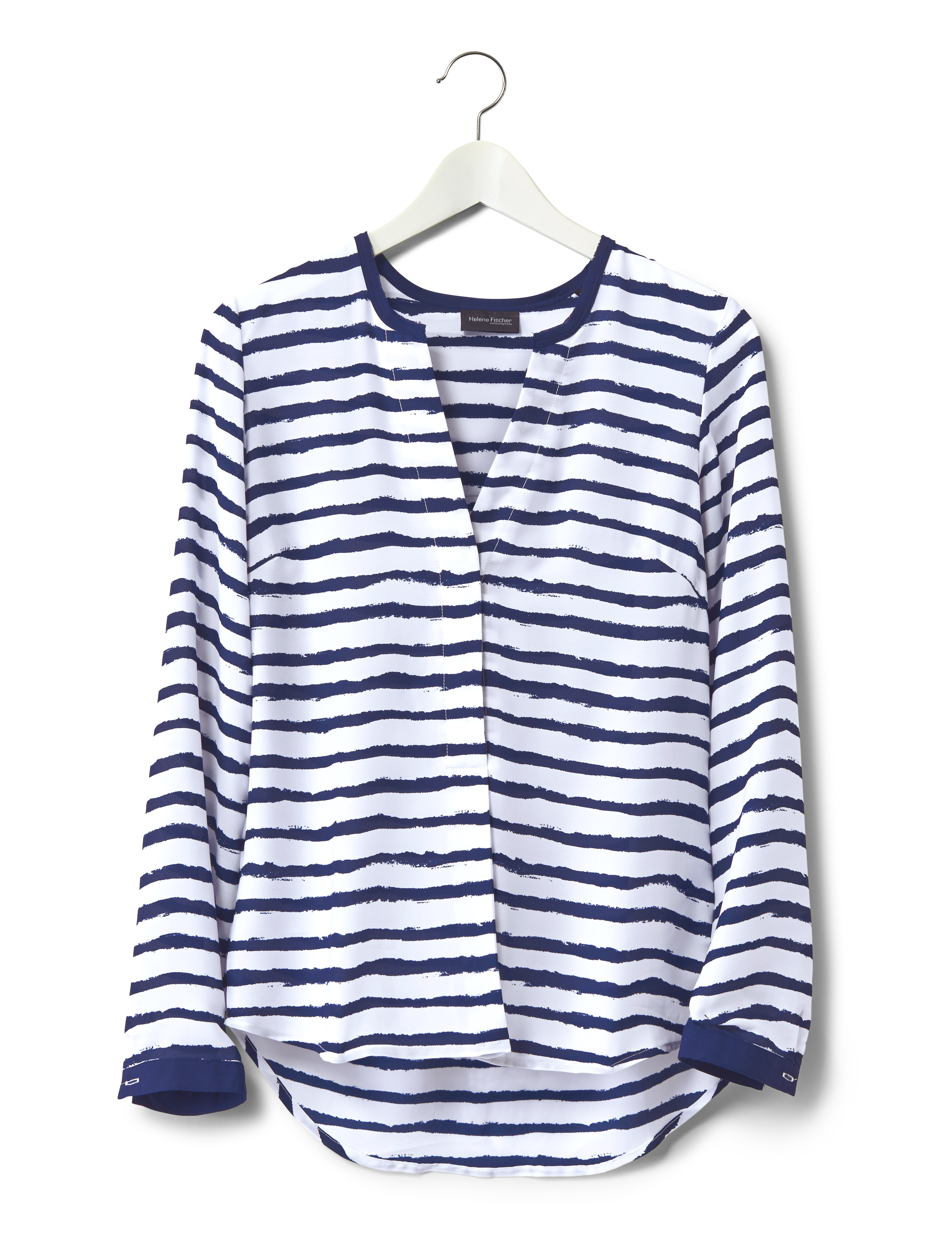 Durch die zarten Streifen wirkt der Look sehr sportiv. Streifen sind ein absolutes Trend Thema in dieser Saison. Für mich gehören Streifen immer zum sommerleichten Look. In allen Magazinen sieht man zur Zeit Streifen. Aber wie Ihr wisst, ist mir nicht unbedingt wichtig, was die Magazine schreiben, sondern was Euch zur positiven Wirkung verhilft. Diese Tunika könnt Ihr genauso gut zu einer weißen Jeans perfekt kombinieren.