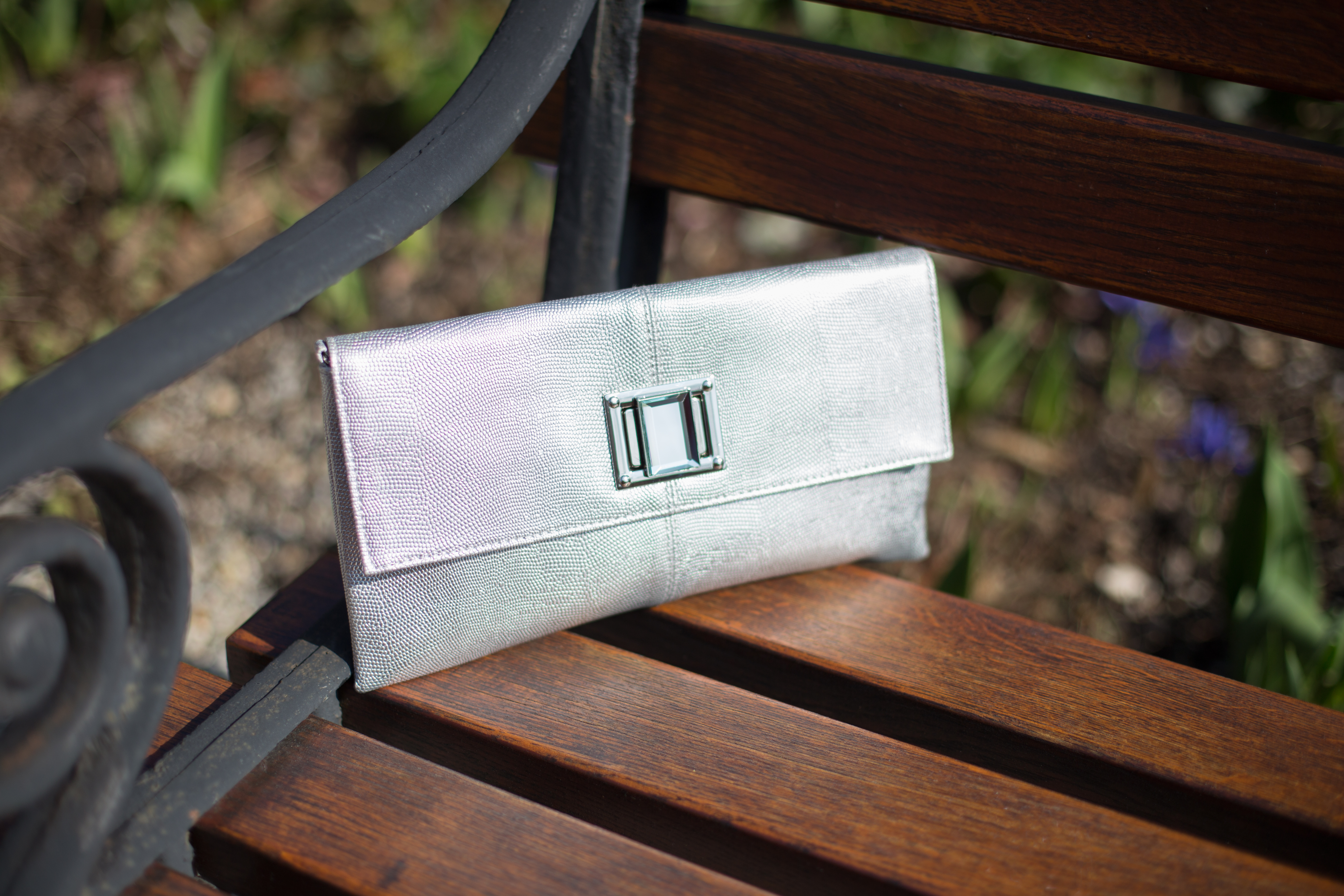 Meine Clutch in Metallic-Ton ist perfekt auf die Nieten und Knöpfe meiner Jacke abgestimmt. Ballerinas in royalblau ergänzen sich mit den Blautönen des Oberteils. Der Blickfang dabei sind die zahlreichen Strasssteinchen auf den Schuhen. Sie waren so günstig im SALE, ich musste zugreifen. Es gibt sie auch noch in Schwarz.