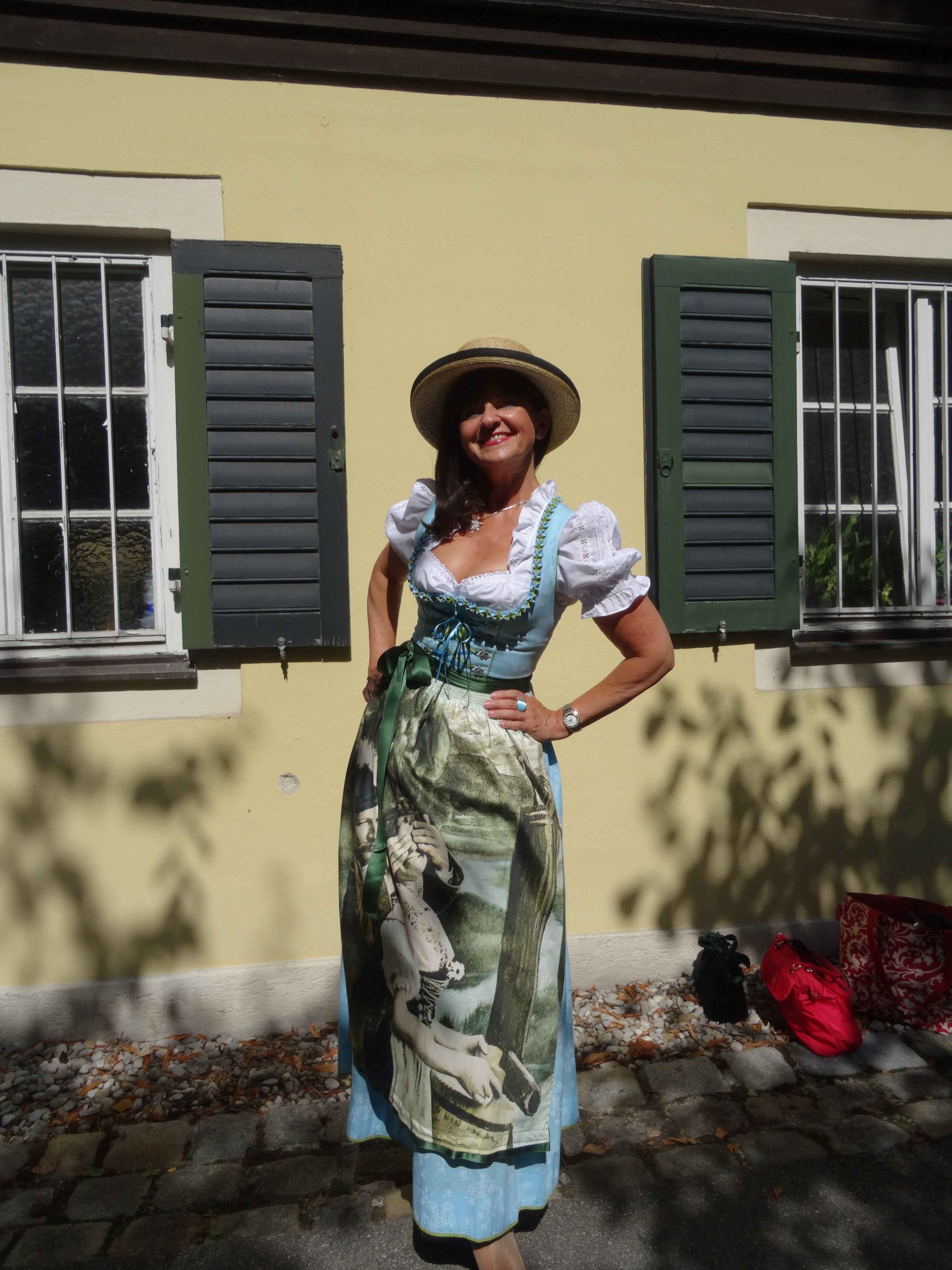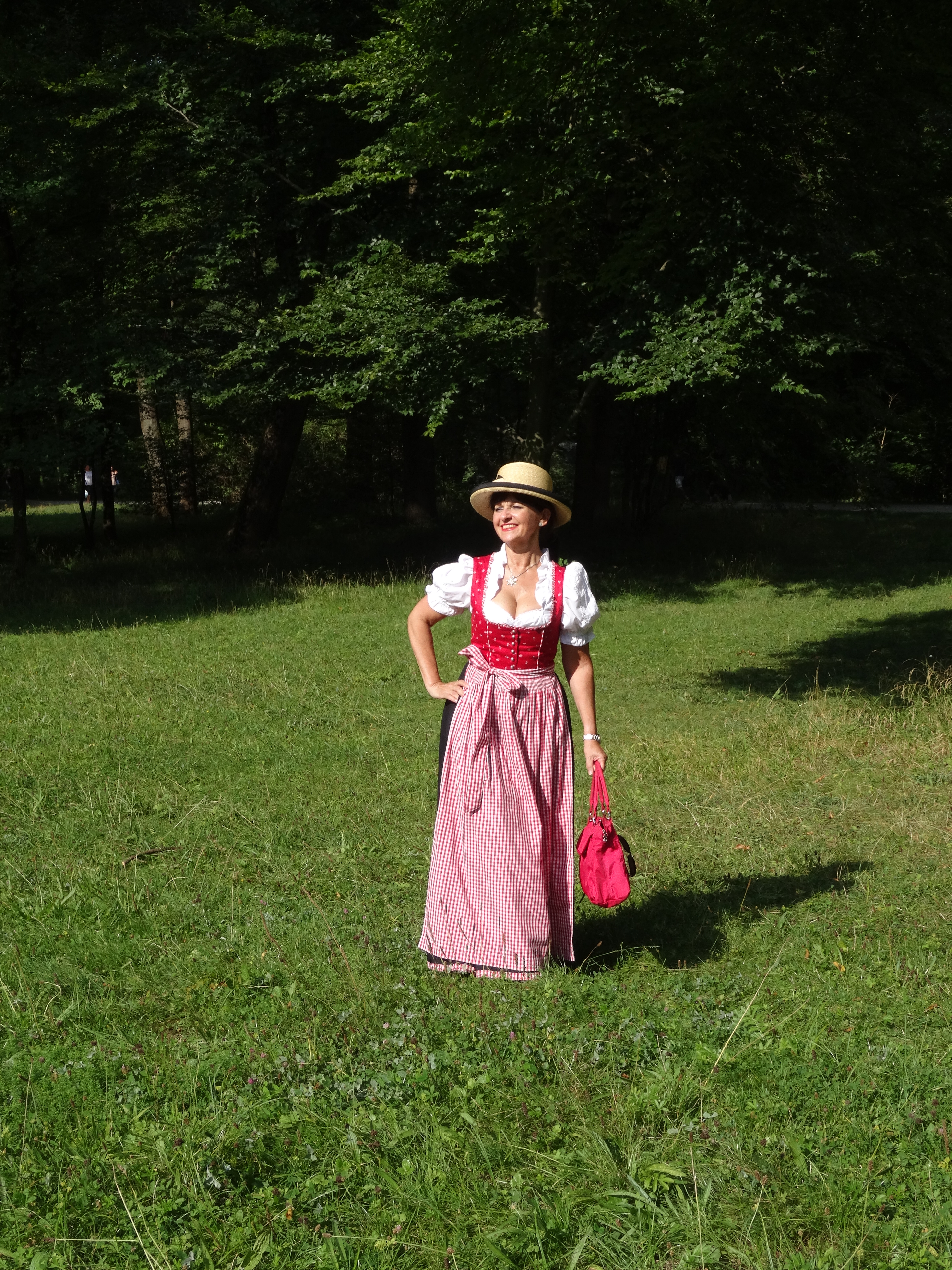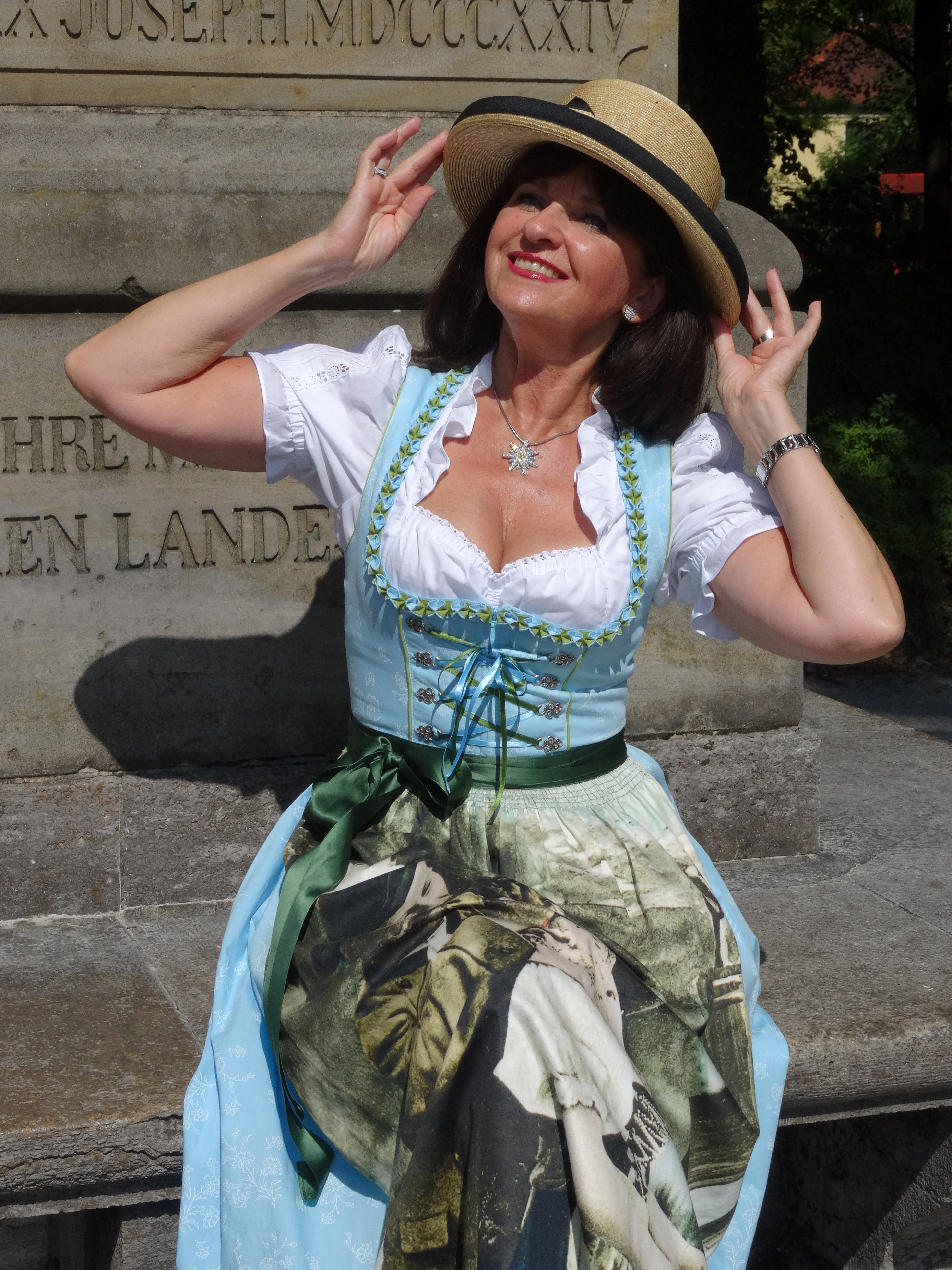 Gerne trage ich einen Strohhut zum Dirndl, vor allem wenn es im Sommer besonders warm ist. Er spendet wirklich Schatten und sieht zum Dirndl einfach stilvoll aus.
