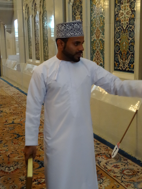 Auf meinem Tagesprogramm steht heute der Besuch der großen Moschee in Maskat. Der vorgeschriebene Dress-Code: Bedeckte Arme, bedeckte Beine, lange Hosen und Kopftuch. Nein, es gibt kein Foto von mir mit Kopftuch!
