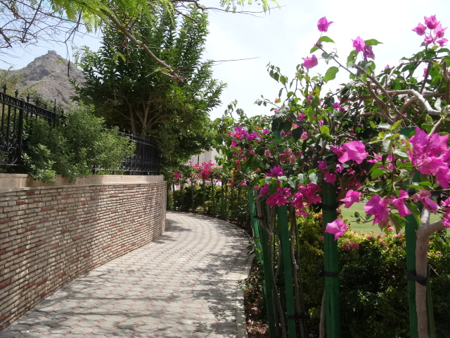Zurück von der kurzen Traumreise von Garmisch wieder in Maskat: Bezaubernde Farben, extravagante Formen und gleichzeitig der imposante Eindruck eines Herscherpalastes. Als ich mich in Richtung Palast bewegte, konnte ich kaum glauben, wie verzaubert man von derartiger Schönheit, Düften und Größe sein kann – mir ging es auf jeden Fall so.