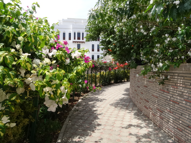 Zurück von der kurzen Traumreise von Garmisch wieder in Maskat: Bezaubernde Farben, extravagante Formen und gleichzeitig der imposante Eindruck eines Herscherpalastes. Als ich mich in Richtung Palast bewegte, konnte ich kaum glauben, wie verzaubert man von derartiger Schönheit, Düften und Größe sein kann – mir ging es auf jeden Fall so.