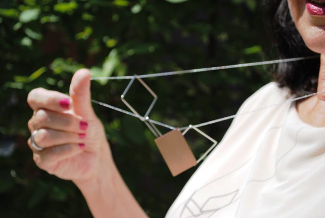 Meine lange Kette verfolgt eine klare Linie. Sie ist in Bi-Color gehalten und absolut unaufdringlich. Passende Ohrringe in asymetrischer Form ergänzen den extravaganten Stil perfekt. Die Kette lässt sich genauso gut zur weißen Hemdbluse, als auch zu einem Top kombinieren.