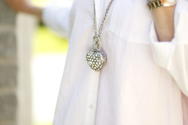 Mein Schmuck ist bei meinem LOOK IN WHITE immer etwas auffälliger, größer oder eine längere Kette. Es dürfen durchaus gewagte Ketten sein. Du kannst Sie natürlich im Winter immer wieder zu einem Pulli tragen. Aber jetzt denken wir nur an den SOMMER IN WEISS!