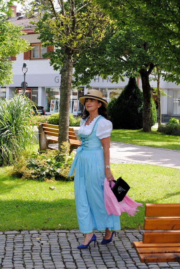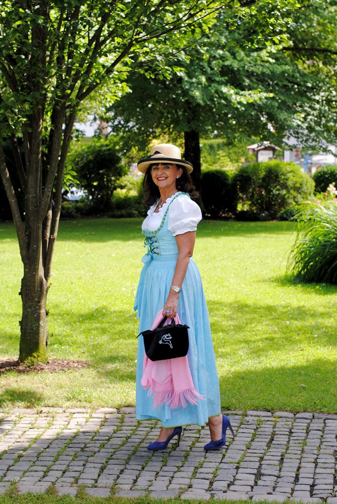 Liebe Martina, Du bist aber auch wirklich eine Dirndlfrau!!!! Wunderschön, das tolle blau des Dirndls, Dein Hut und Samtbeutelchen – auch der tolle Hintergrund – einfach schön – möchte mich hinbeamen!!!!