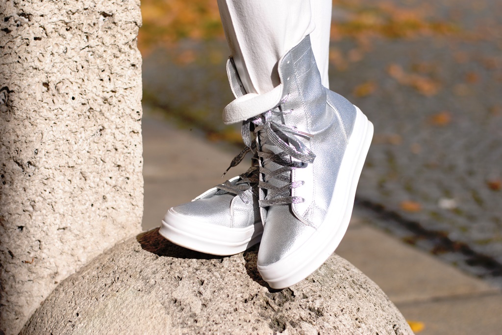 Sind Sie Dir schon aufgefallen? Meine silberfarbigen Sneakers. Ja, Du siehst richtig – ich trage Sneakers. Wie ich Euch auf INSTAGRAM mitgeteilt habe, war ich am Samstag auf der BEAUTY MESSE in München. Für mich ein Muss – und gleichzeitig immer wieder Inspiration. Da habe ich diese tollen Sneakers entdeckt und nicht lange gezögert.