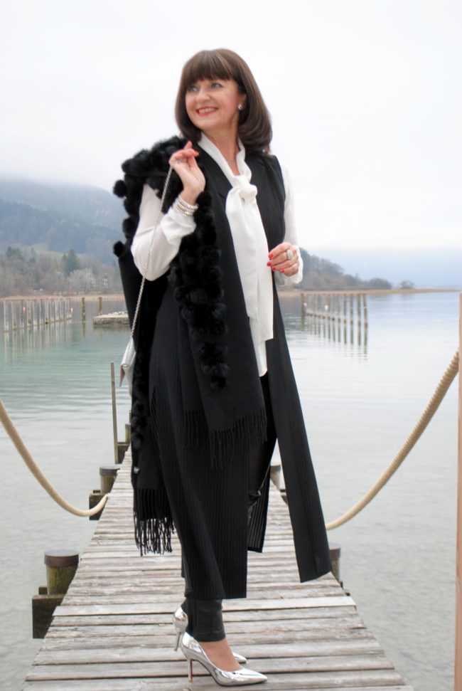 das ist ein tolles Outfit. Wie immer gefallen mir besonders die silberfarbenen Accessoires, die den schwarz-weiß Look festlich aufwerten, ohne dass es zu überladen wirkt.