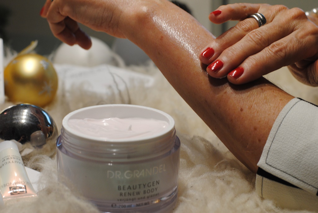 Ich bin leider schon Ü50 und die Haut ist nicht mehr so straff. Gerne möchte ich deshalb die Grandelpflege RENEW Body ausprobieren, denn zu Weihnachten möchte ich ein wenig Haut mit einem neuen Kleid zeigen. 🙂