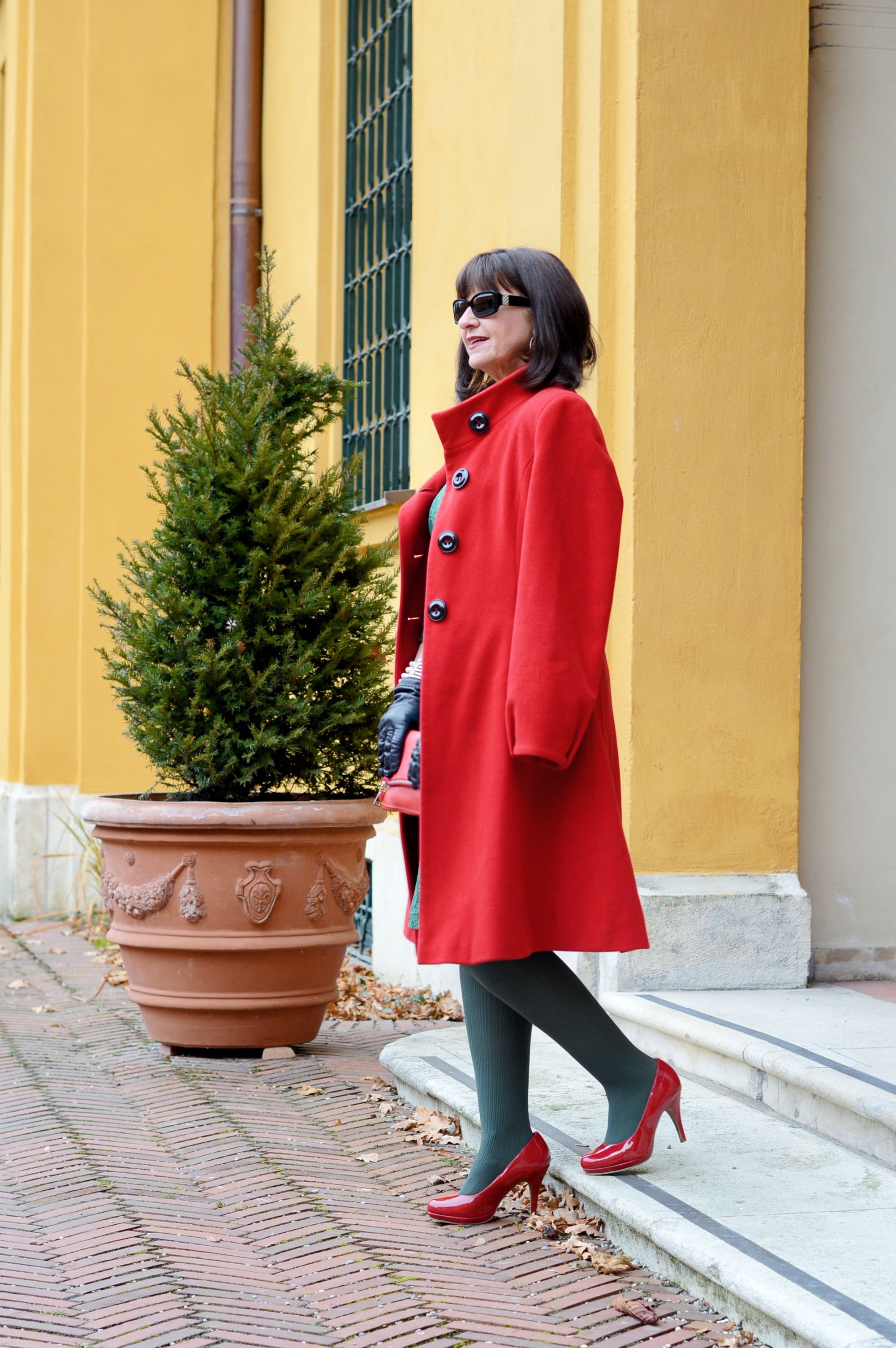 Da wir im Dezember eher kühlere Temperaturen haben, ist der edle Wollmantel mit Kaschmir-Anteil einer meiner aktuellen Favoriten. Mein roter Wintermantel ergänzt mein Farbkonzept. Ja, ich liebe ROT. Viele charmante Kommentare erreichen mich von Euch, wenn ich ROT trage – ich danke Euch dafür.