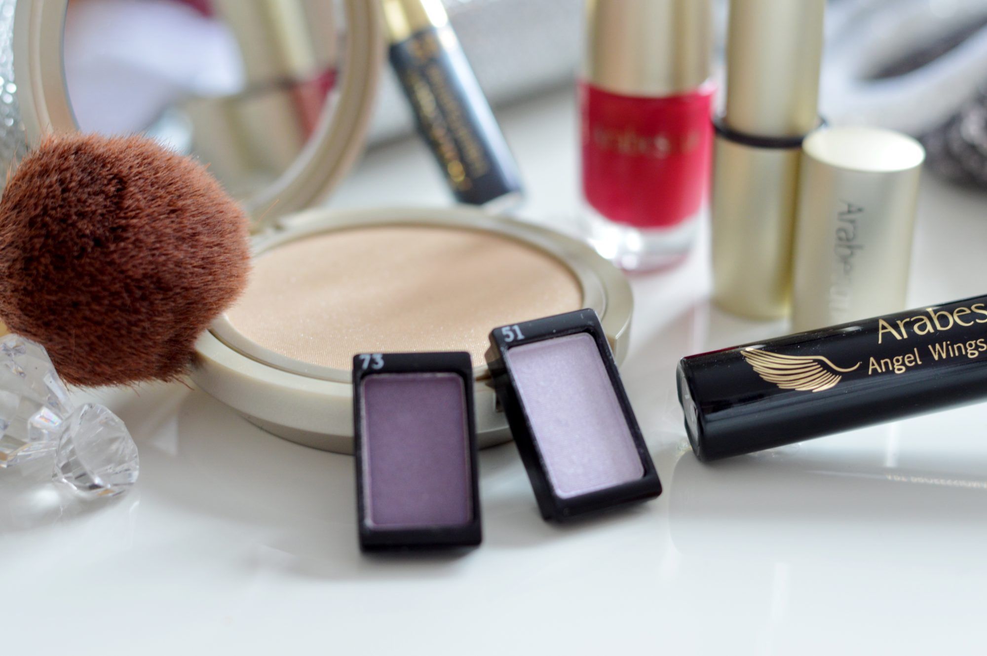 Die Augen dürfen für ein bezauberndes Abend Make up etwas ausdrucksstärker geschminkt werden. Ich habe mich für zwei Lidschattenfarben aus der aktuellen ARABESQUE Make up-Kollektion entschieden, die zu meinem Farbtyp WINTER sehr gut harmonieren. Der leichte Roseton lässt sich zusätzlich zu weiteren Farben, wie Grau, Blau oder Grün, kombinieren.