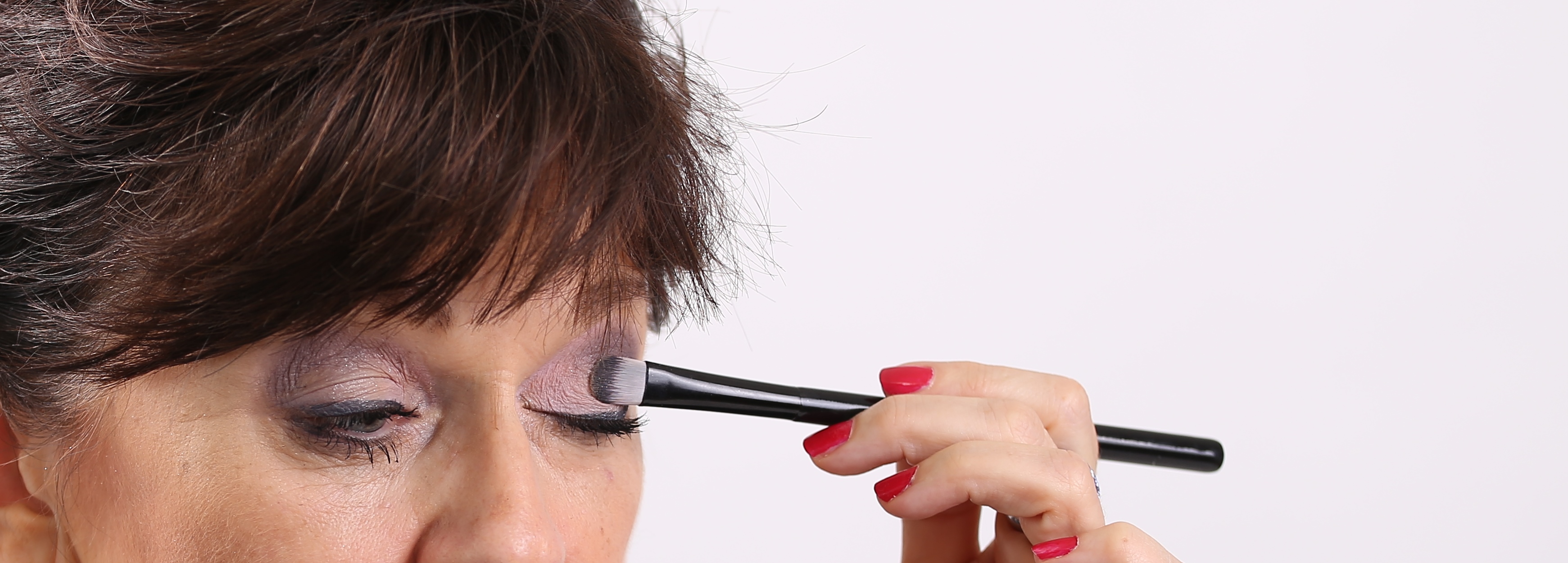 Der helle Lidschatten – Nr. 51 – von Arabesque wird auf das bewegliche Lid mit einem Lidschattenpinsel aufgetragen. Für einen ausdrucksvollen Look empfehle ich eine zweite, dunklere Lidschattenfarbe aufzutragen.