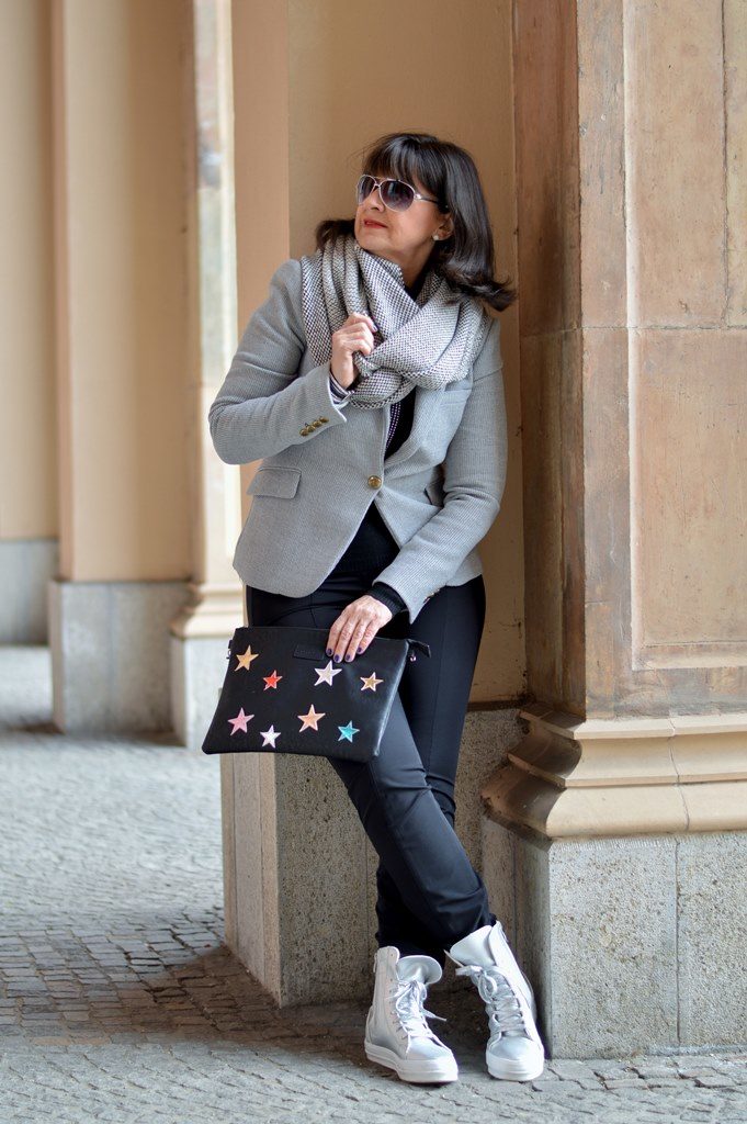 Liebe Beate, schön, dass ich Dich mit meinen silberfarbigen Sneakers begeistern konnte – DANKE DIR! Würde mich natürlich überaus freuen, wenn ich Dir mit meinen Stil Inspirationen in die neue Woche helfen konnte. Eine graue Lederjacke ist eine tolle Kombination für meinen vorgestellten Look. Einen stilvollen Gruß – Martina