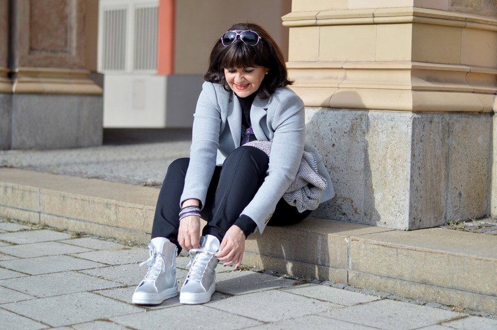 Hallo liebe Martina, ich habe ja schon auf das Outfit mit den silbernen Sneakers gewartet. Das sieht richtig gut aus und gefällt mir sehr gut. So würde ich auch ohne weiteres in’s Geschäft gehen, wenn ich an diesem Tag keinen Kundenkontakt hätte. Mal sehen ob ich das morgen mal nachahme. Vielleicht kombiniere ich dazu meine graue Lederjacke. Ich war seit über einem Jahr auf der Suche und bin vor kurzem fündig geworden. Viele liebe Grüsse Beate S.