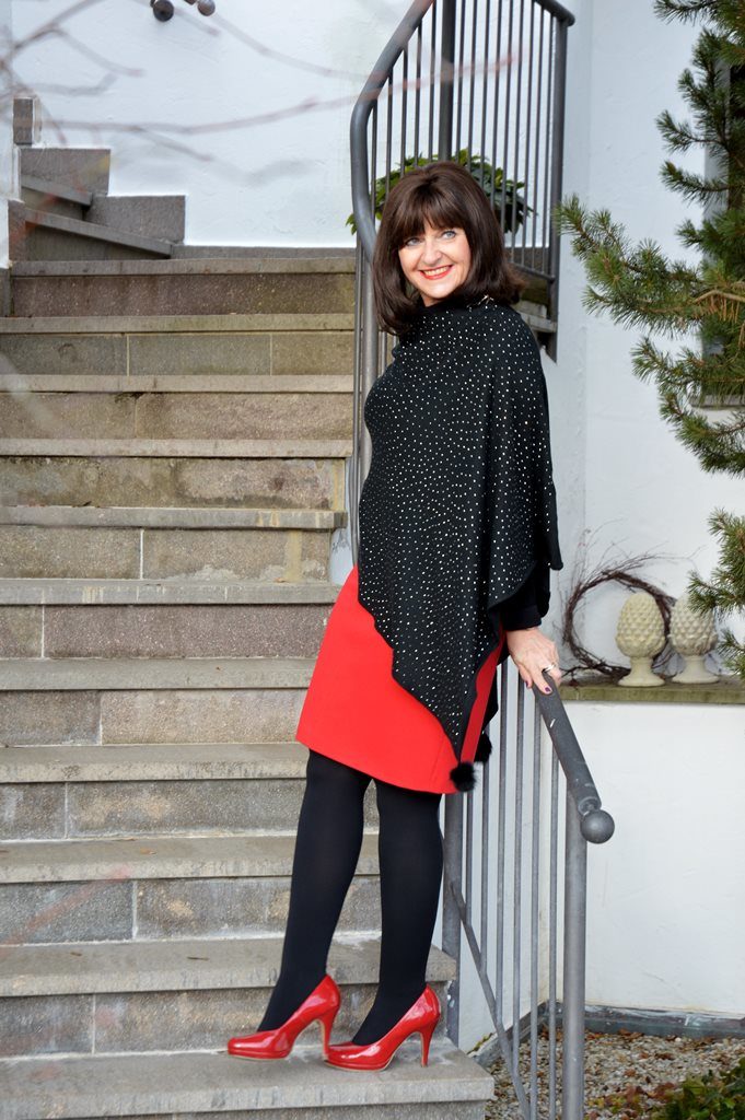 Ein schickes Abendessen ist geplant. Ich mache mir schon Gedanken, was ich zu den verschiedenen Anlässen tragen kann. Frau sein ist angesagt. Mit einem Rock oder Kleid unterstreiche ich meine Weiblichkeit. Einen roten Rock kombiniere ich mit roten Highheels und einer blickdichten Strumpfhose. Durch die zahlreichen Strasssteinchen wirkt mein schwarzes Cape vor allem bei Kerzenlicht ganz besonders.