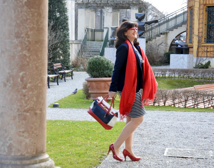 Die Farben Rot, Weiß, Blau sind beliebte Klassiker. Meine Tasche in diesen drei Farben gehört zu meinen Frühjahrs- und Sommerlieblingen. Die Größe und die zeitlose Form sind mir bei einer Handtasche wichtig.