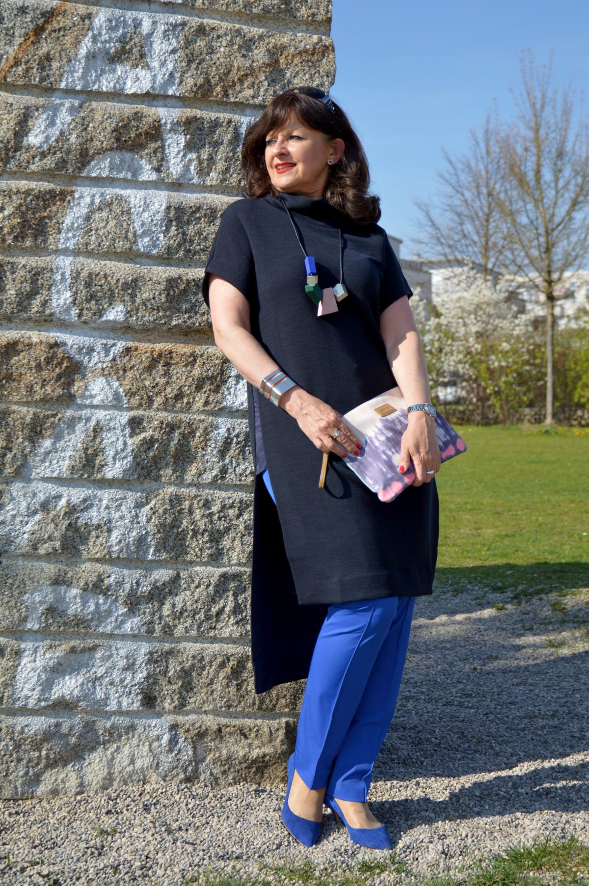 Eine Hose muss bequem sein. Sie darf immer schick und auch mal lässig sein. Dadurch wird eine Hose zum Allrounder. Ein idealer Kombinationspartner für meinen Tag beim Kunden, im Büro und gerne am Abend. Meine royalblaue Hose ist eng geschnitten. Dadurch kann ich mit den unterschiedlichsten Oberteilen immer wieder einen neuen Look kombinieren.
