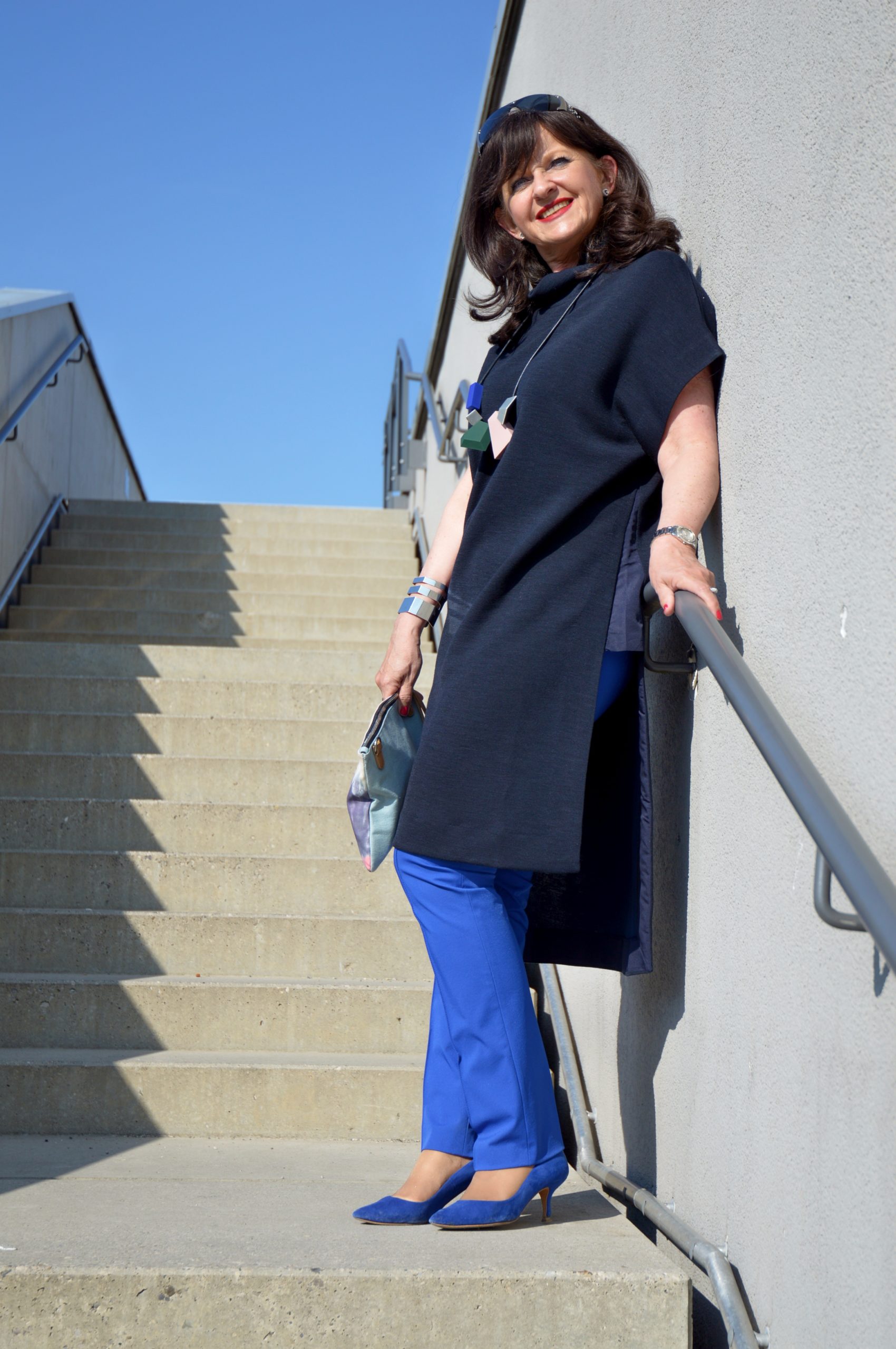 Der Look gefällt mir sehr gut und steht dir ausgezeichnet, aber – auch ich bin nur 1,61 m und bin mir nicht sicher, ob es mir steht. Ich habe so eine Art von Oberteil noch nie anprobiert.