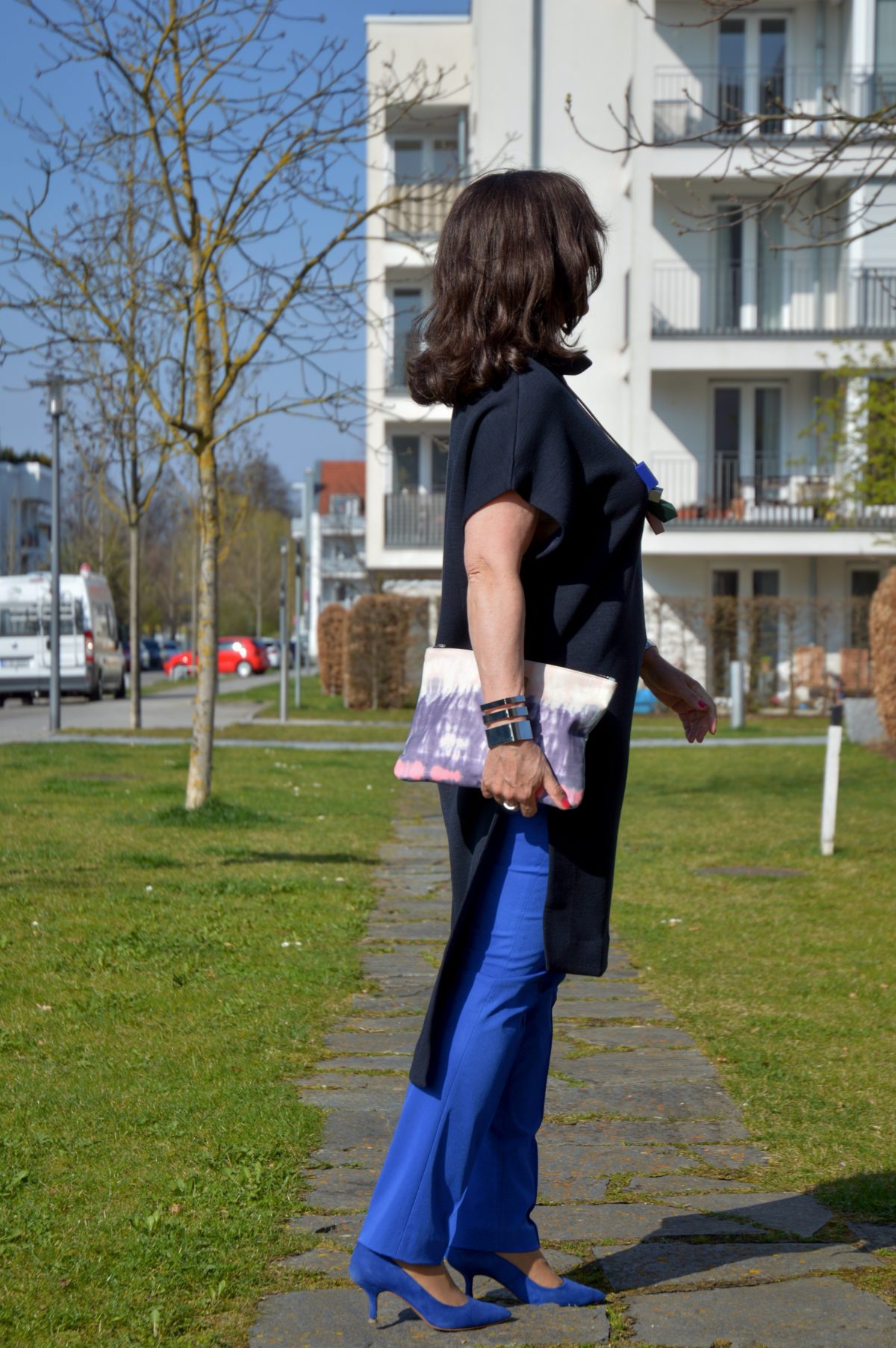 Eine Hose muss bequem sein. Sie darf immer schick und auch mal lässig sein. Dadurch wird eine Hose zum Allrounder. Ein idealer Kombinationspartner für meinen Tag beim Kunden, im Büro und gerne am Abend. Meine royalblaue Hose ist eng geschnitten. Dadurch kann ich mit den unterschiedlichsten Oberteilen immer wieder einen neuen Look kombinieren.