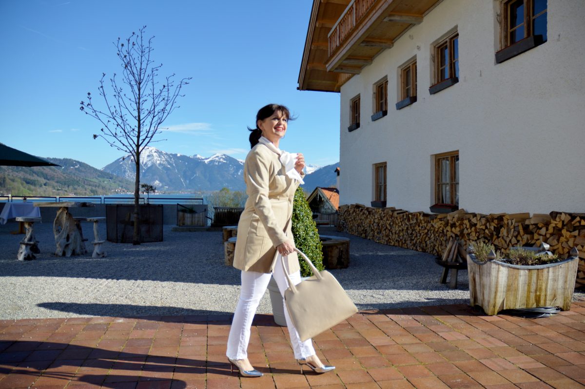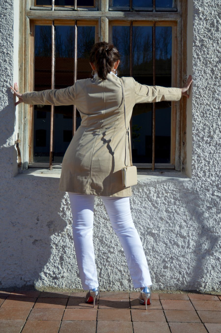 Ich überlege mir schon im Vorfeld, wie ich meinen Velourblazer für mein Frühlings-Styling in Szene setzte. Meine erste Idee: Mit einer weißen Jeans und meiner weißen Seidenbluse edel und schick kombinieren.