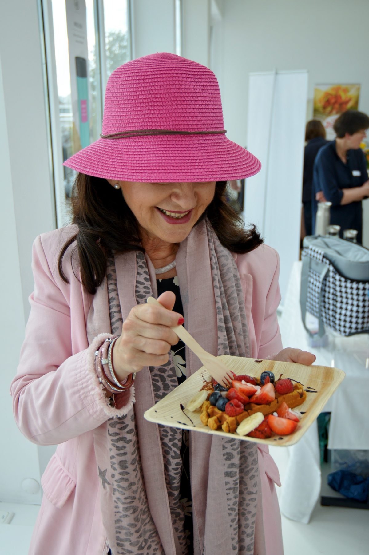 Bestimmt kannst Du Dir vorstellen, dass es auf der ganzen Etage ganz lecker nach den verschiedenen Genüssen gerochen hat. Mmmmmhhhh – ich rieche Waffeln! Das war der Stand, an dem so viele Blogger anstanden. Ich habe mich auch eingereiht, denn ich wollte so gerne Waffeln aus Kokosmehl und Kokosblütenzucker probieren. Was soll ich sagen – ein Genuss ohne Reue.