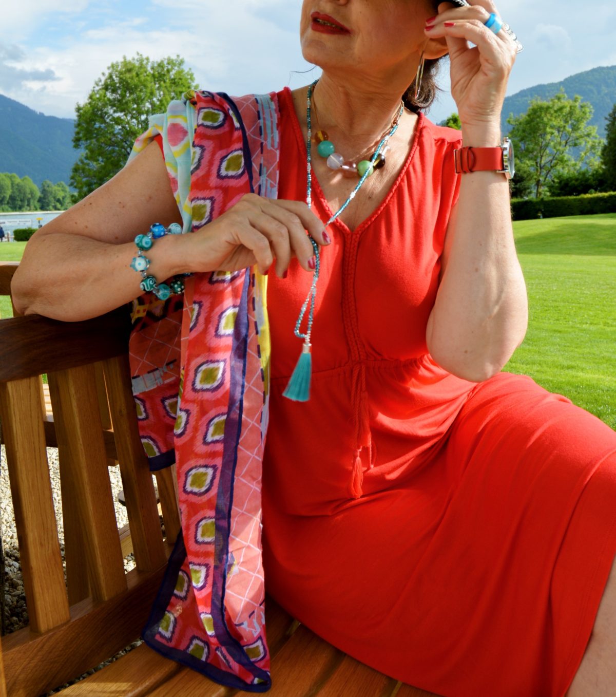 Du siehst, was man mit Accessoires alles optimieren kann. Also, am besten selbst und live nochmals ein Bild davon machen. Ich mag das Kleid sehr gerne, und zwar genauso wie ich es vorgestellt habe. Einen ganz herzlichen Gruß – Martina