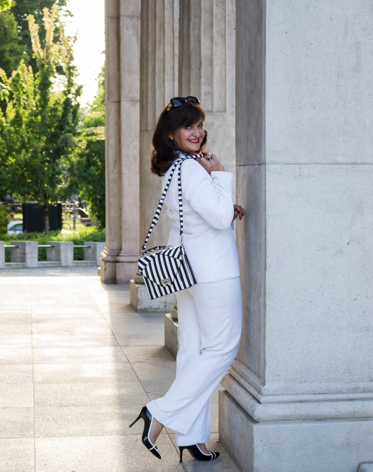 ich kann es mir richtig gut vorstellen, wie Du in WEISS einen glänzenden Auftritt hinlegst. Im letzten Jahr hatte ich den weißen Hosenanzug mit nudefarbigen Schuhen und Tasche vorgestellt. Vielleicht hast Du diesen Beitrag letzten Jahr sogar schon gelesen?