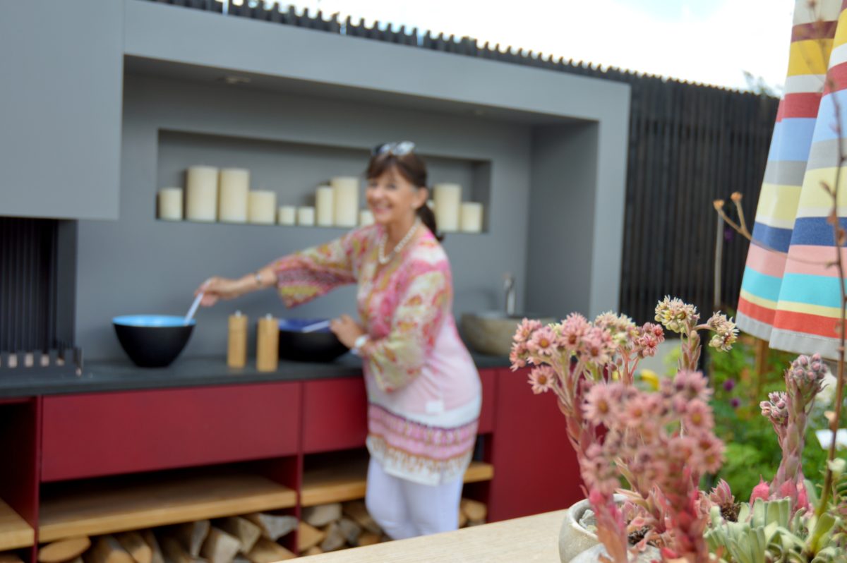 Trends für den Garten bietet die Gartenschau natürlich auch. Dieser trendige Ort, wie ihn viele Gartengestalter nennen, wird mehr und mehr zeitgemäß ausgestattet. Ein Platz für die Essenszubereitung darf „im Trend der Zeit“ im Freien nicht fehlen. Wer einen Garten in dieser Größe hat, ist wahrlich ein glücklicher Mensch – hoffe ich zumindest.