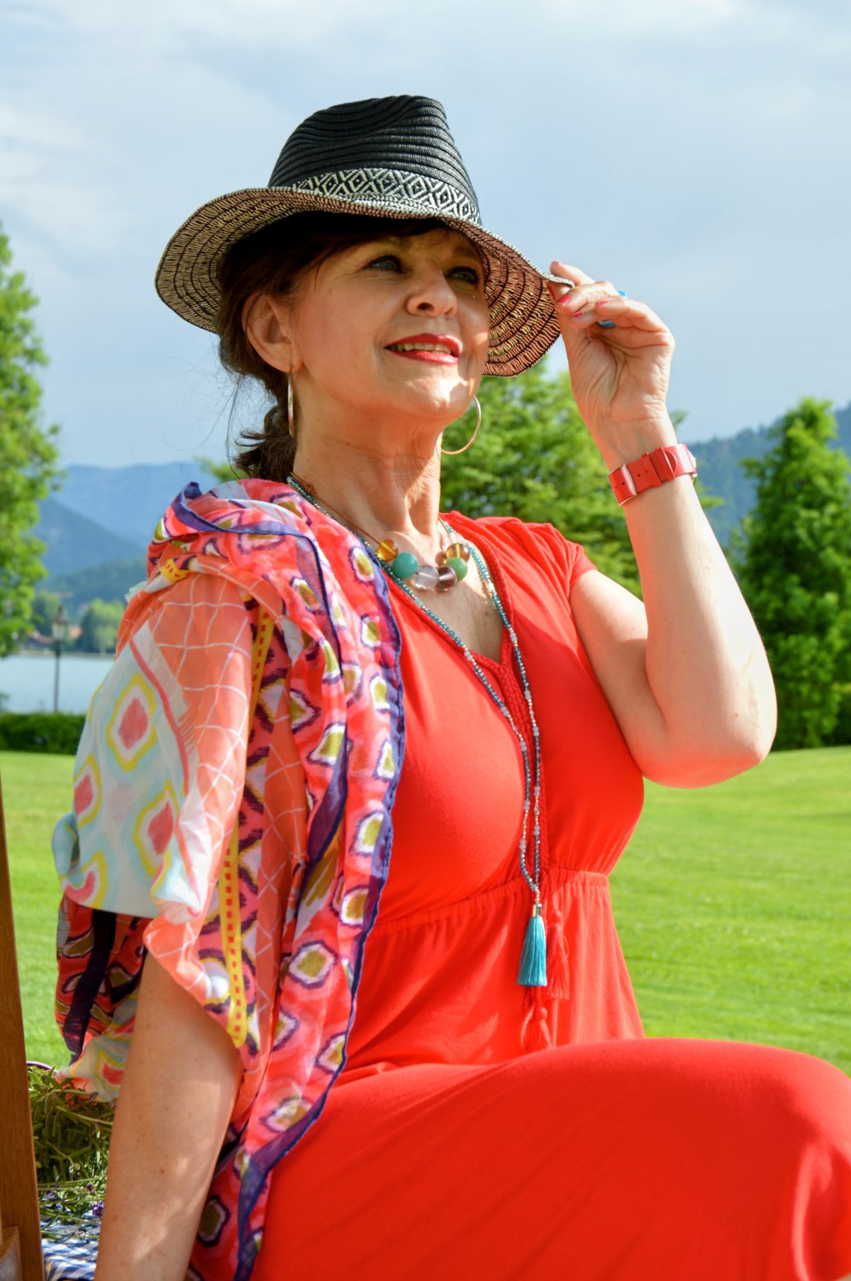 Ein ausgiebiges Frühstück im Straßencafé oder im eigenen Garten? Oder soll es ein Picknick am Nachmittag geben? Auf jeden Fall sind ein paar Einkäufe zu erledigen, da der Kühlschrank ziemlich leer ist. Da schlüpfe ich ganz einfach in mein rotes leichtes Sommerkleid. Am Wochenende kombiniere ich es mit Hut und Tuch. Das ist für mich der perfekte Sommer-Look!