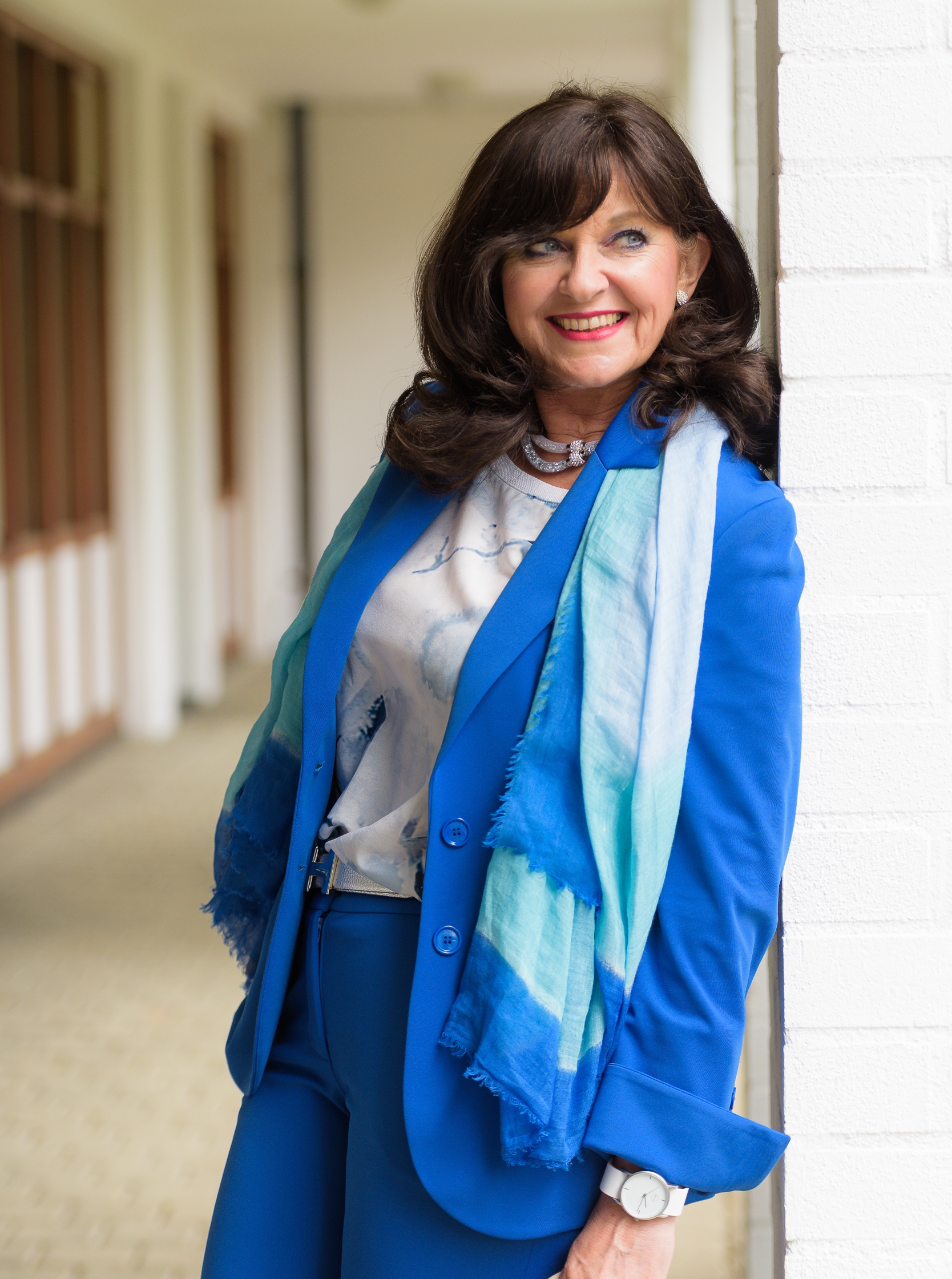 Kornblumenblau – was für eine wundervolle Beschreibung. Ein Hosenanzug kann die Ausstrahlung und die Wirkung einer Lady positiv in den Mittelpunkt rücken, was bei meiner Tätigkeit sehr oft ein ausschlaggebender Faktor ist.