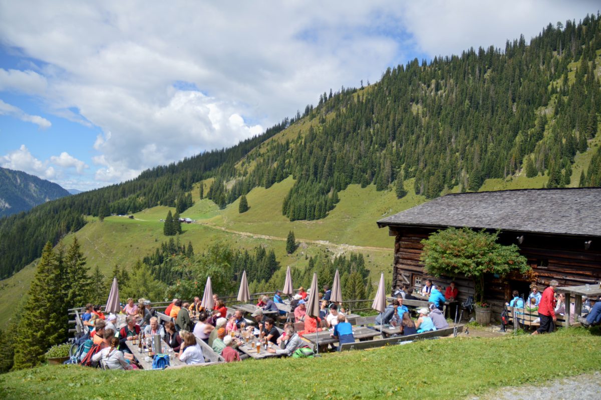 Mit meiner Wandergruppe kehre ich ein. Jeder isst eine Kleinigkeit, die Enkelkinder bedienen die zahlreichen Gäste und der Wirt gibt uns allen ein Schnapserl aus, bevor wir uns auf den Heimweg machen.