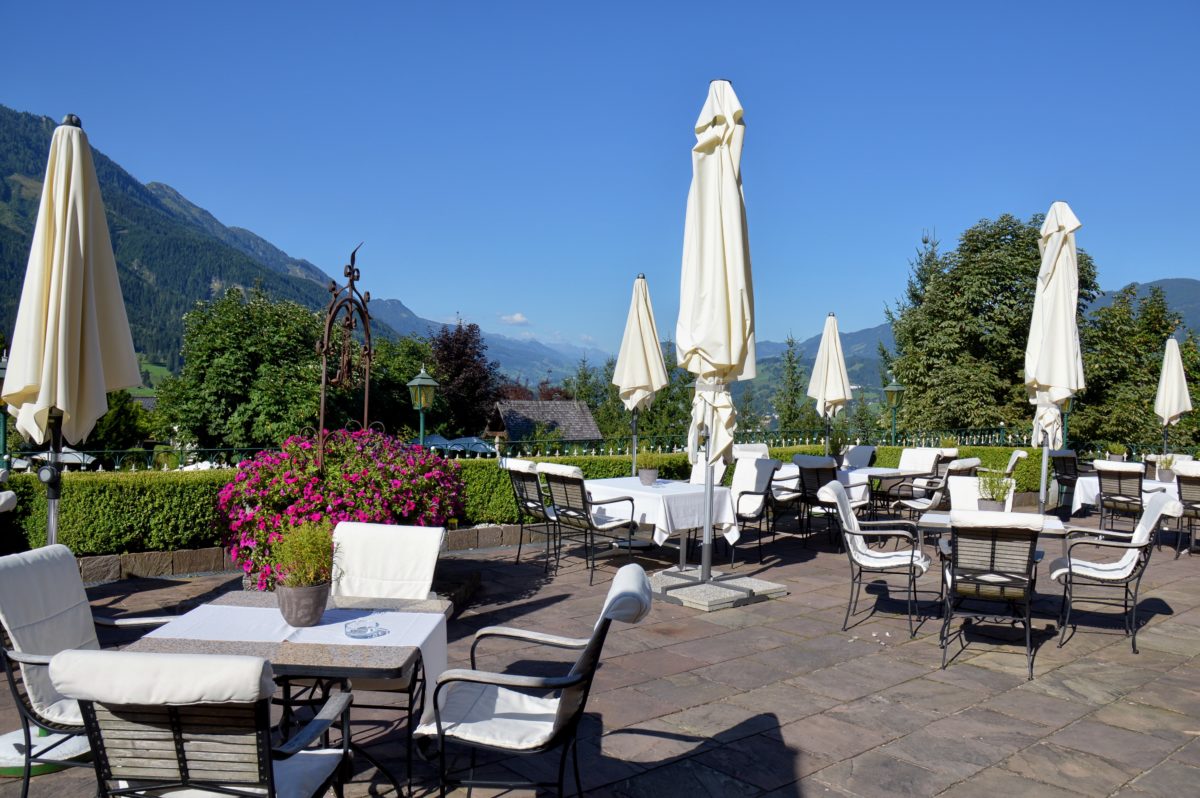 Am liebsten hätte ich nur auf der großzügigen Sonnenterrasse meine Frühstück und Dinner eingenommen. Am Nachmittag eine Tasse Kaffee und ein, zwei Stück Kuchen sich zu gönnen, das ist im Urlaub durchaus legitim. Genauso gut ist ein Salat aus dem reichhaltigen Nachmittagsbuffet mit regionalen Produkten im Angebot. Ganz nebenbei kann ich das einzigartige Panorama genießen. So ein Ausblick lässt jedes Herz aufgehen.