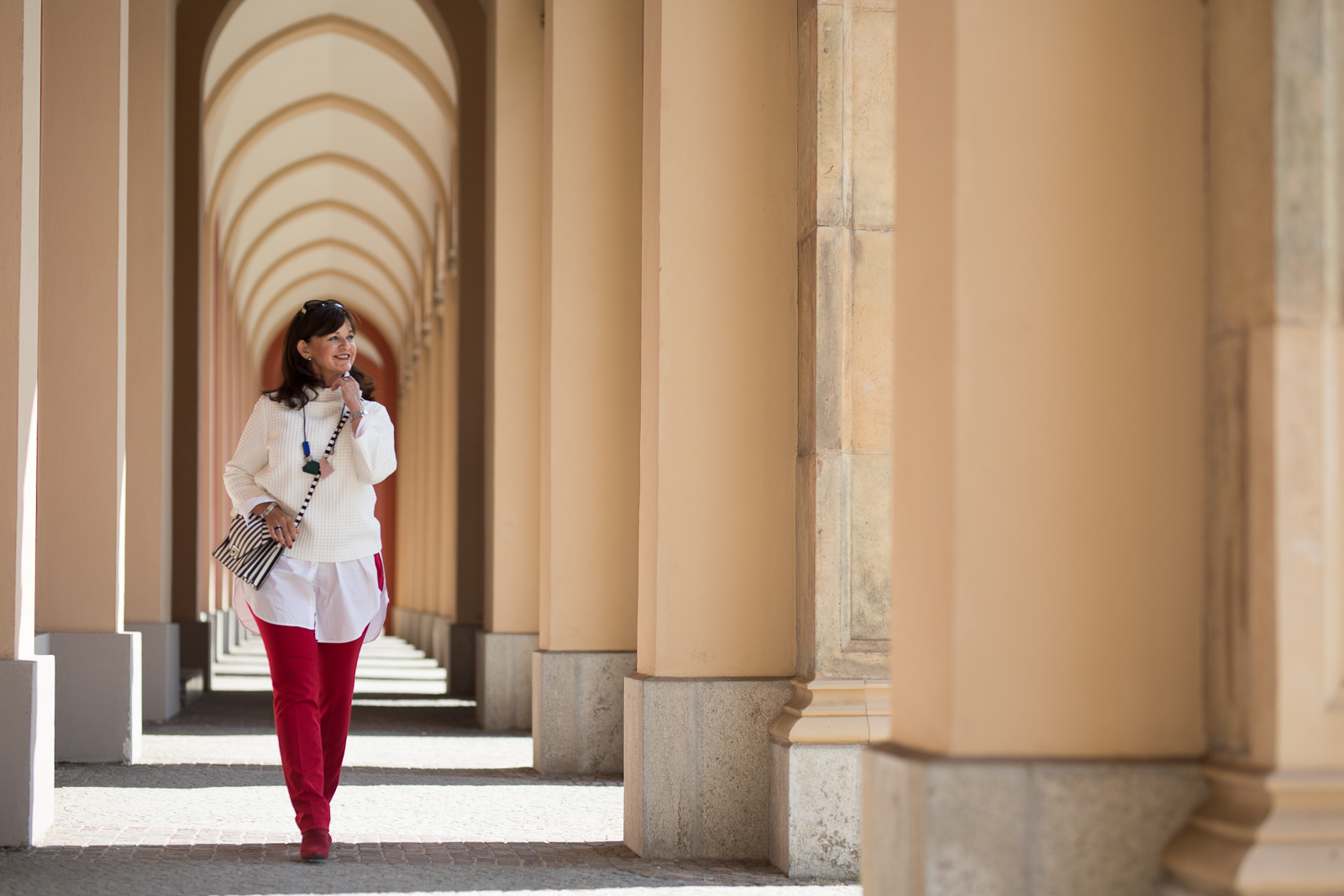 Hallo Martina, super schicker Herbstlook mit Mut zur Farbe. Die rote Hose in Kombination mit dem weißen Pullover steht dir ganz ausgezeichnet. Die Fotos sind übrigens mal wieder super geworden und die Foto Location ist richtig perfekt.