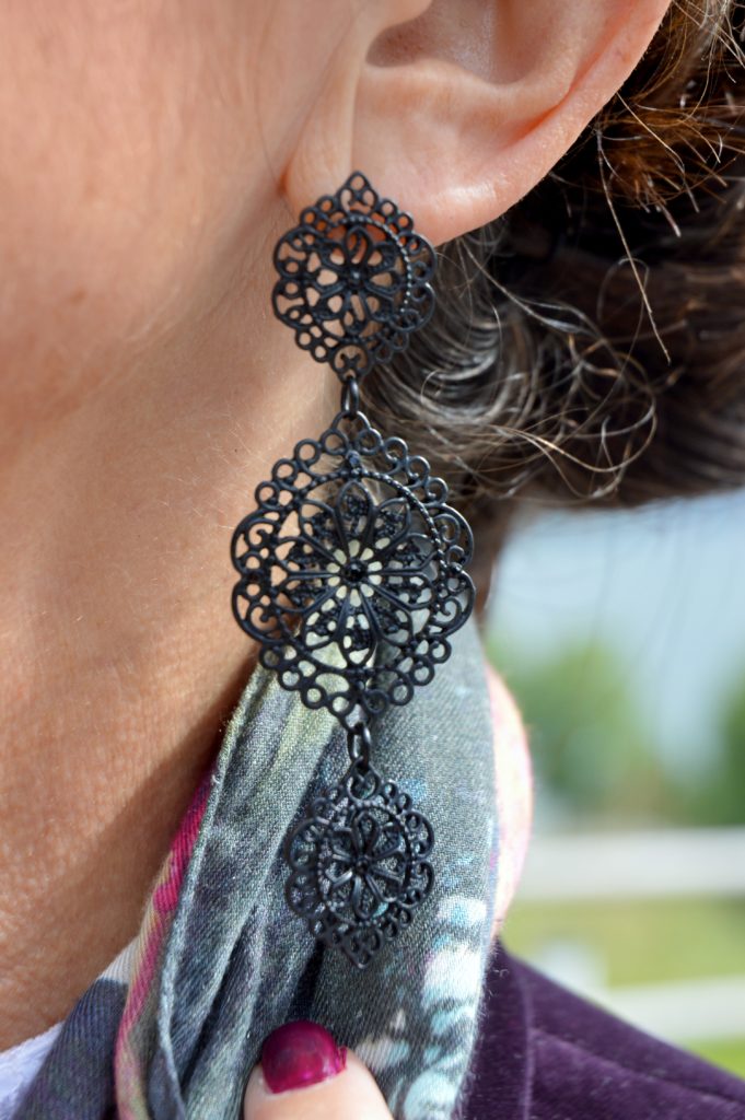 Meine Samtjacke sieht zu so vielen Outfits perfekt aus. Ich hatte sie vor kurzem mit einer Seidenbluse und einer farbigen Jeans getragen. Herzlichen Dank für Dein großes Kompliment über meine Zielsicherheit in Sachen Accessoires und Details.