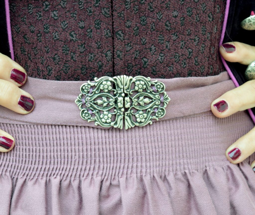 Die SCHÜRZE ist für mich ein weiteres Highlight bei meinem neuen Herbstdirndl. Zartes Altrosa gepaart mit wundervoller Stickerei und einer besonderen Schließe aus Metall spiegeln den traditionellen Look wider. Kein Gedanke dabei, ob die Schleife nun rechts oder links gebunden wird. Absolut praktisch für ist der Verschluss und für „unschlüssige“ Schürzenträgerinnen ideal.