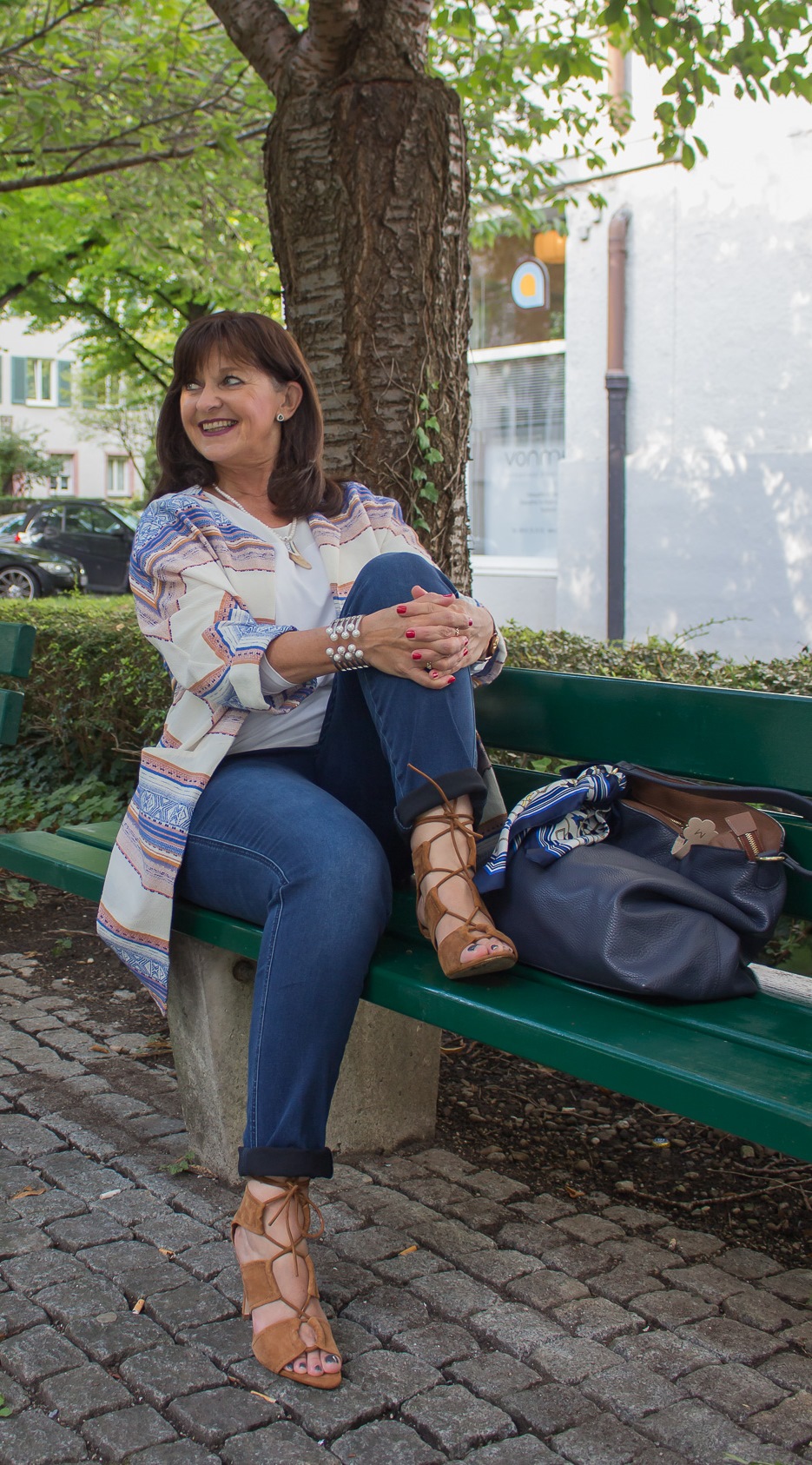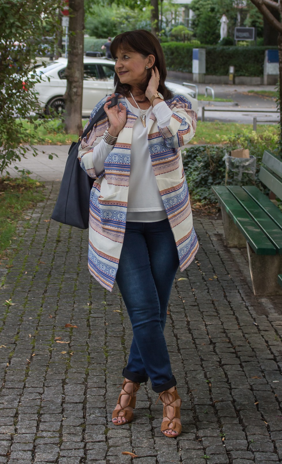 Ich trage Jeans auch oft, mit Blazer,Strickmantel oder Longblazer.
