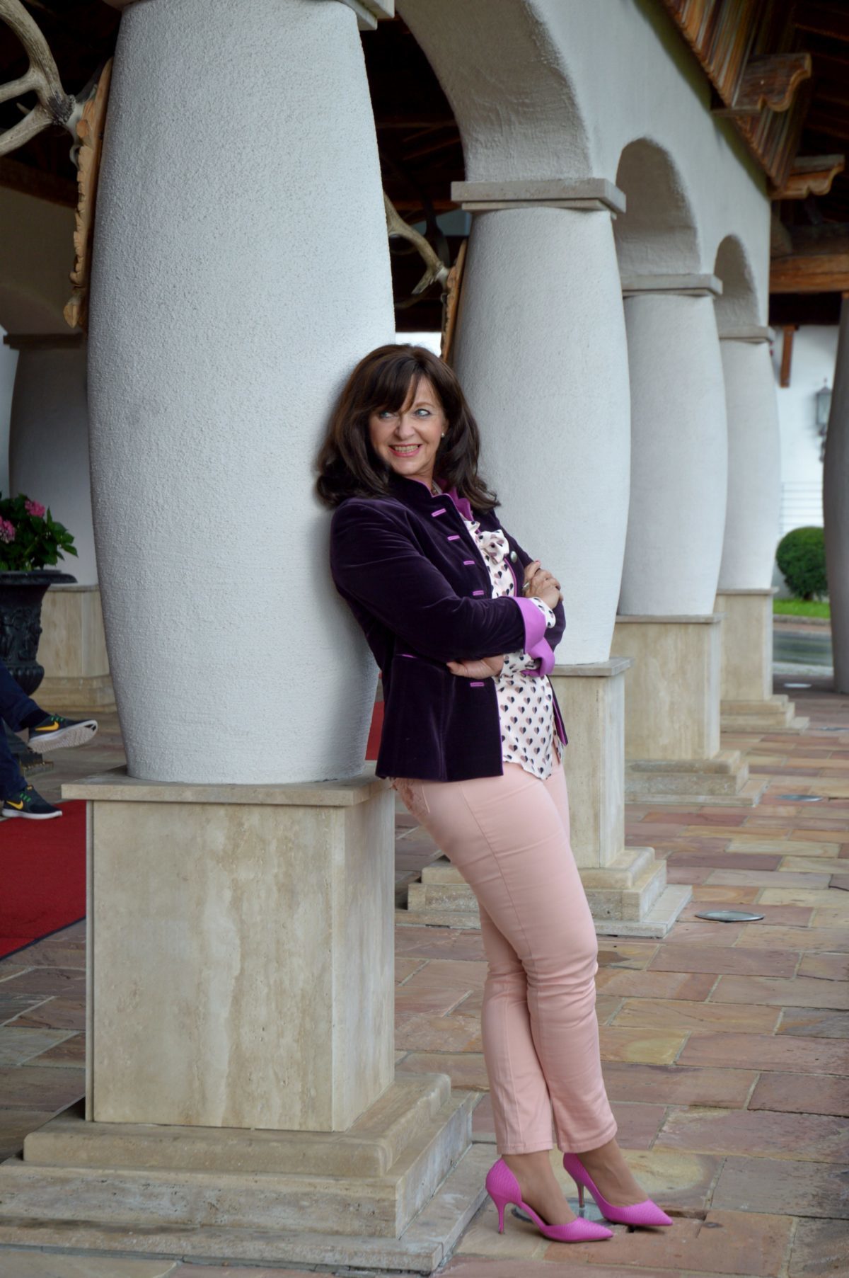 Der Samtblazer mit den lilafarbenen Schuhen ist echt etwas ganz Besonderes und Ausgefallenes!