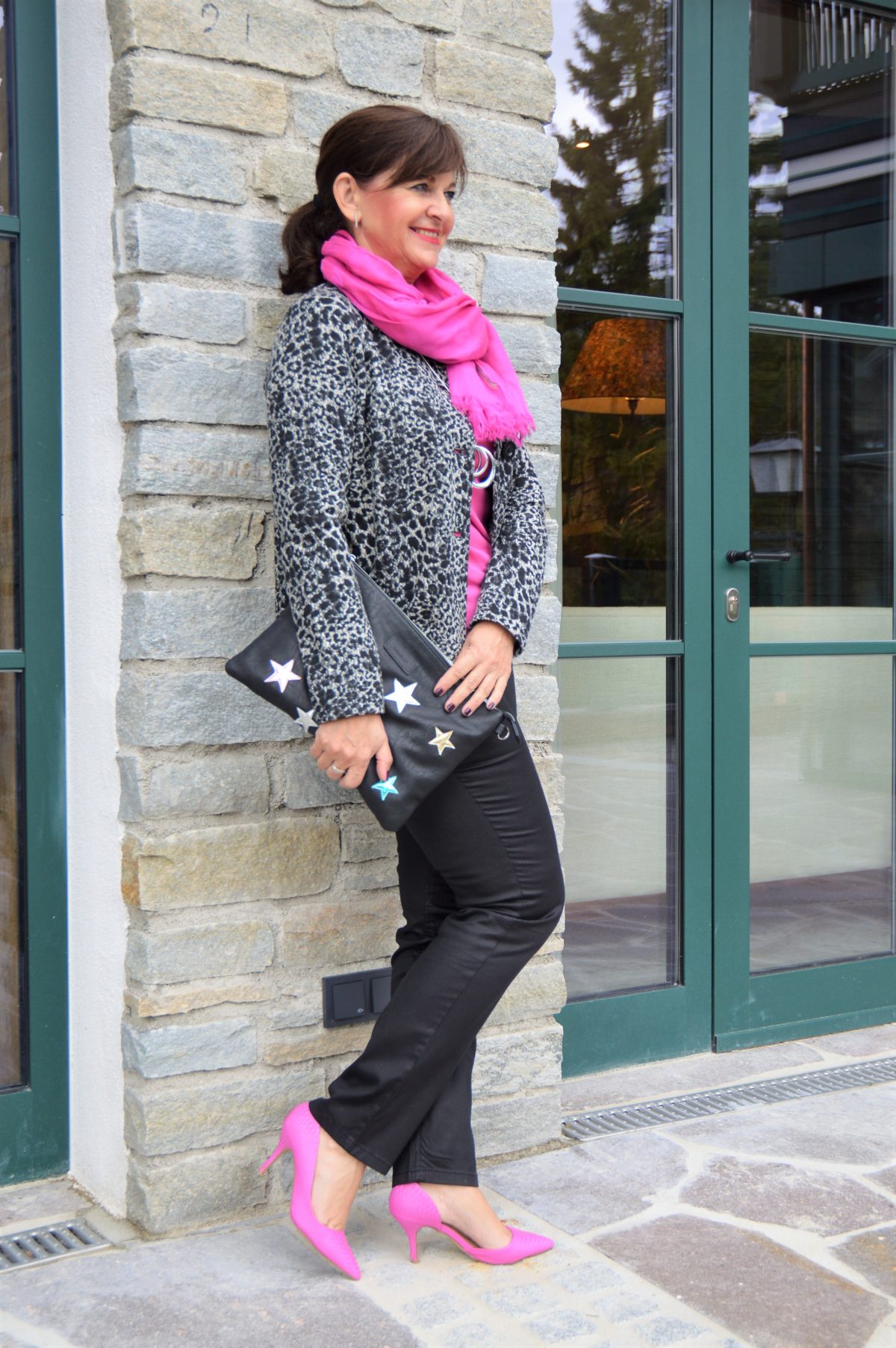 Hallo Martina, ein toller Look – schwarz und pink – eine tolle Farbkombi für Dich! Leolook hab ich überhaupt nichts – nicht einmal einen Schal, sollte ich umdenken??