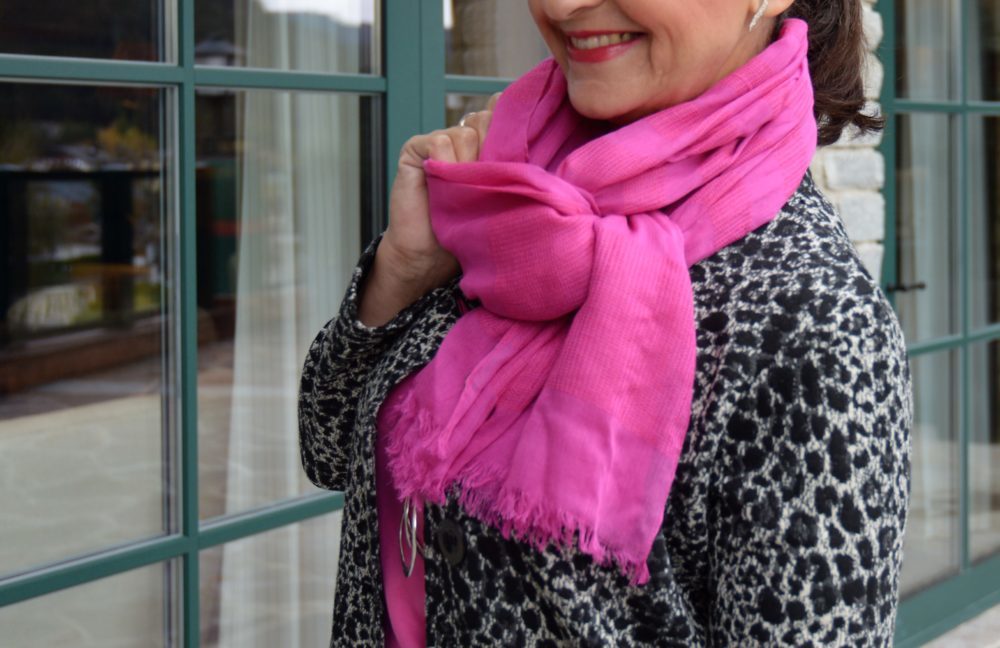 Übrigens, falls Du eine Inspiration benötigst, wie Du Dein Tuch oder Deinen Schal binden kannst, dass er nicht verrutscht, auf meiner Fanpage auf Facebook habe ich ein VIDEO eingestellt. Ganz einfach zum Nachstylen – viel Spaß damit.