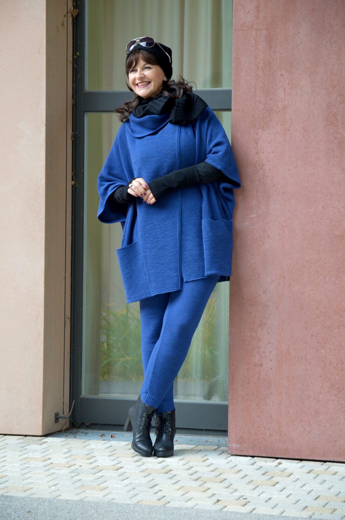 Heute mach ich Blau. BLAU ist ja angeblich das neue Schwarz. Hand auf’s Herz – Schwarz ist Schwarz und Blau ist Blau. Stimmt’s? Meine Styling Idee für heute ist mein bequemes und kuscheliges Strickkleid in einem atemberaubenden Blauton. Mit meinem Oversize Schal (jedes Teil ein Unikat) kombiniere ich es passend für die Jahreszeit. Möchtest Du wissen, wo es diesen Schal gibt?