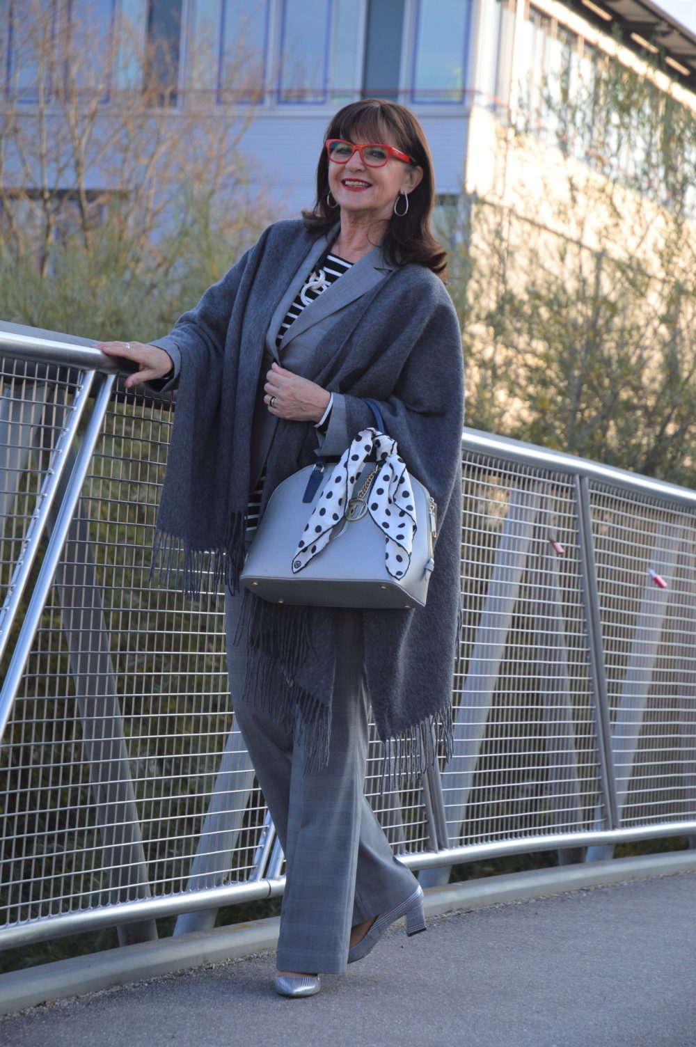 Guten Morgen Martina, wie immer klasse. Für sich alleine wäre der Hosenanzug nicht der Hingucker, aber sind mal wieder die Accessoires. Die Schuhe, die Idee das du Streifen dazu kombinierts und dein Schmuck machen aus dem Hosenanzug etwas Besonderes. Du bist wirklich die Königin der Accessoires und Stylingideen. Viele liebe Grüsse Beate
