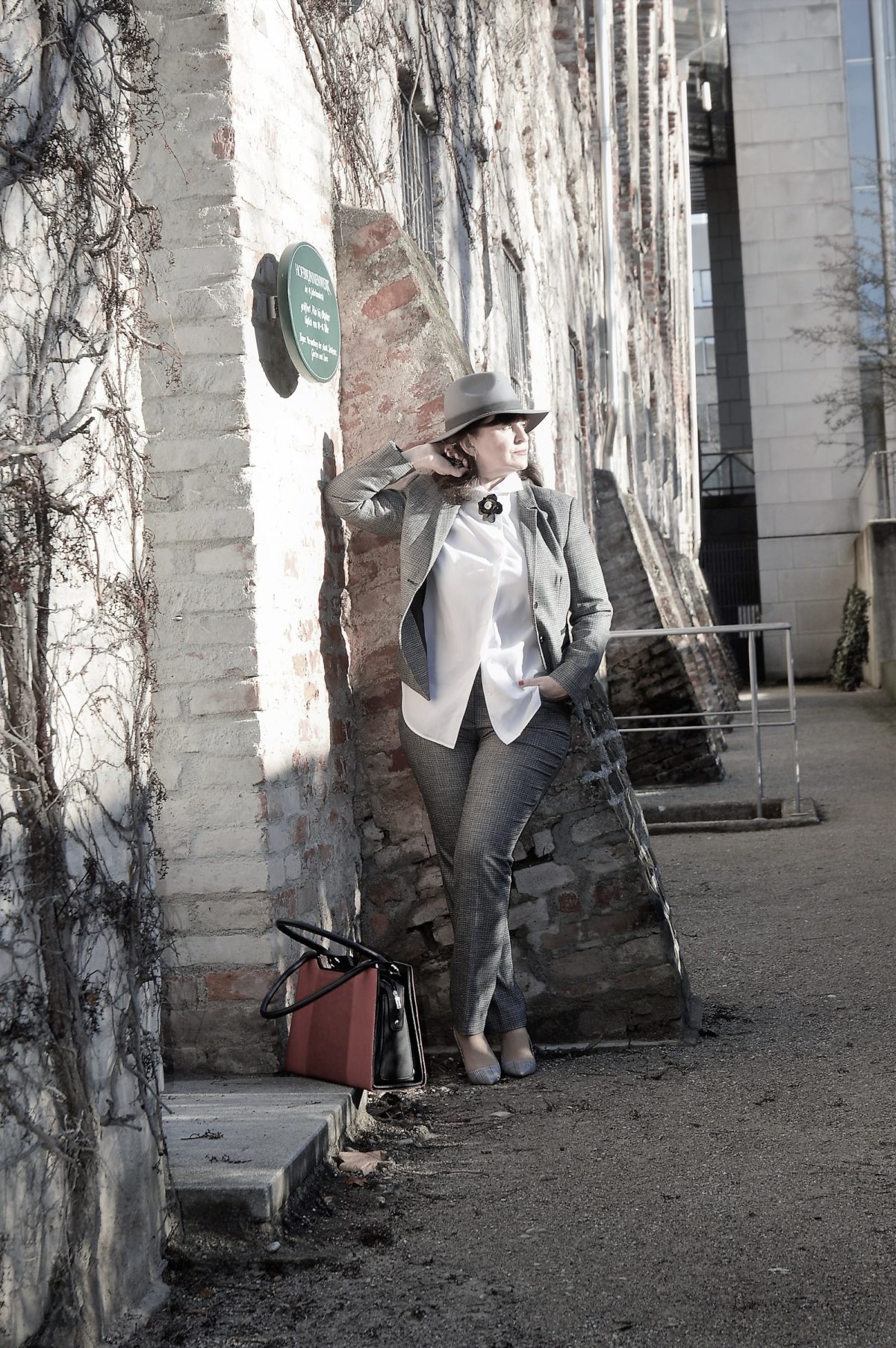 Meinen Hosenanzug habe ich mit einer oversize Bluse kombiniert. Sie wird über die Stoffhose getragen und gibt dem ganzen eine gewisse Lässigkeit. Der Vorteil an einem Hosenanzug liegt auf der Hand: Er kann immer wieder unterschiedlich getragen werden.