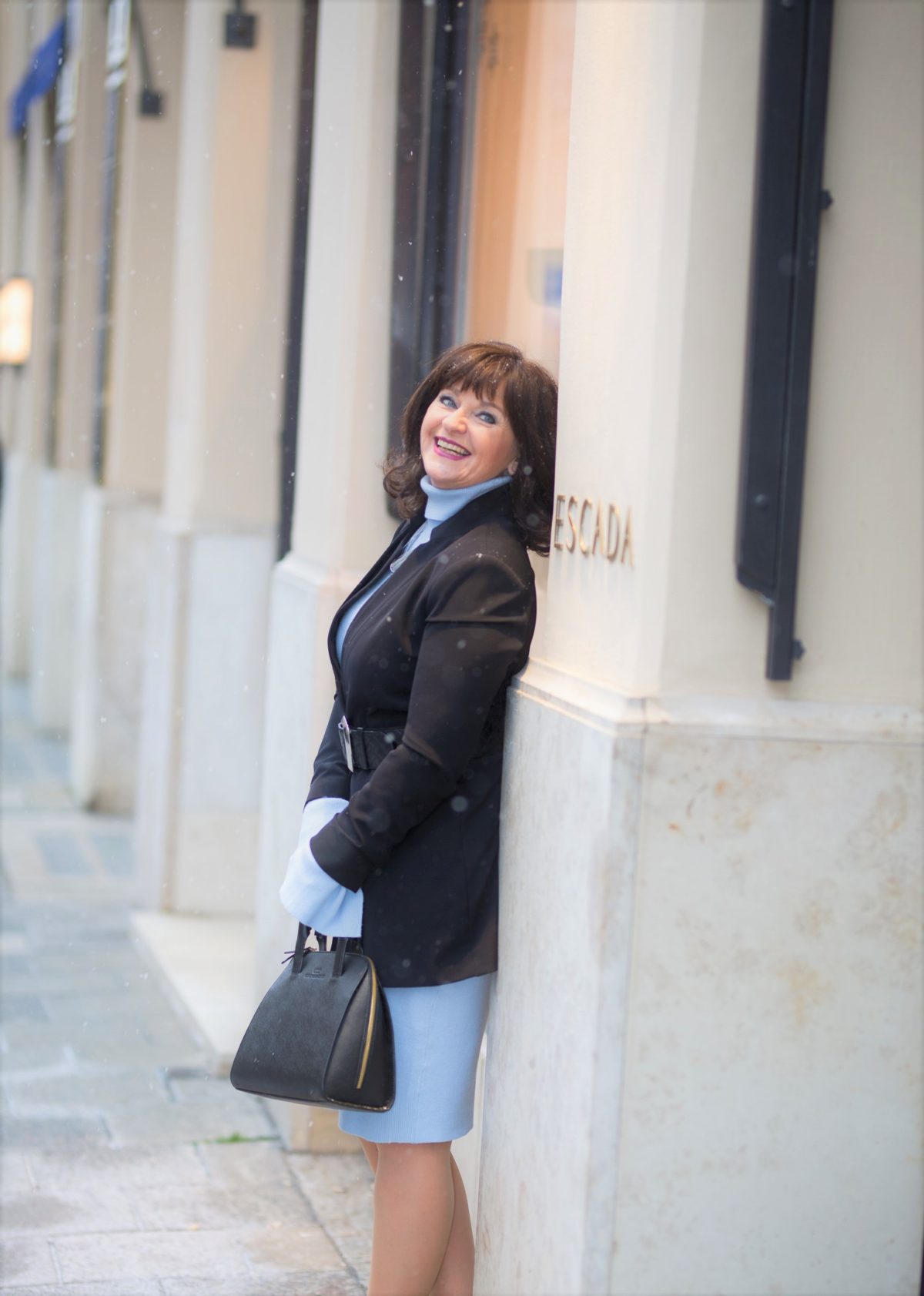 Ihr seht richtig: Beim Foto-Shooting fing es plötzlich an zu schneien. Aber da muss Frau als Fashionista einfach durch. Deshalb die kleinen weißen Punkte auf den Fotos, was ich richtig schön finde. Die Bilder bekommen einen ganz außergewöhnlich schönen Charakter.