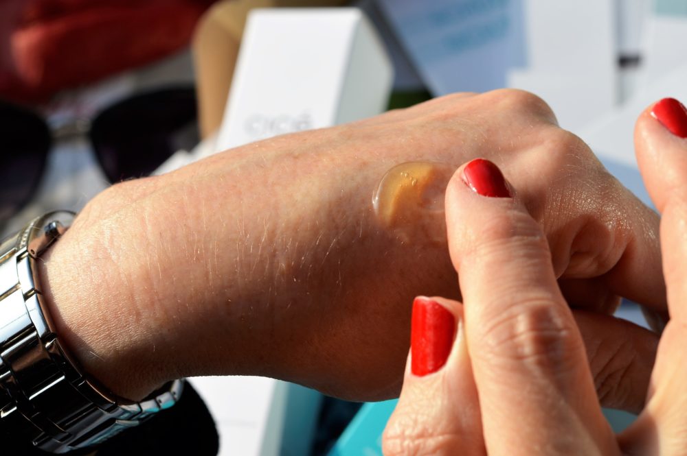 Maximal 3 Pumpstöße reichen bei meiner Haut aus, um die Maske auf das gereinigte Gesicht aufzutragen. Denn ich nutze die CICÉ Hydromaske als Booster über Nacht. Unter meiner Nachtpflege aufgetragen, zieht die Maske wunderbar ein. Das Ergebnis am Morgen ist eine frischere und glattere Haut.