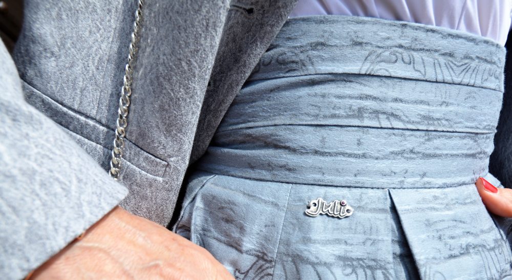 „Wohlfühlen und strahlen im Gwand“ ist das Credo der Designerin. Die Basis dafür schafft die heimische Handwerkskunst mit ihren zauberhaften Handdrucken: Juli entscheidet sich bewusst für Stoffe und Accessoires – wie die von ihr gern verwendeten Kristalle von Swarovski® – aus Österreich und Deutschland. Das alte Wissen und das neue Lebensgefühl spiegeln sich in den verwendeten Materialien.